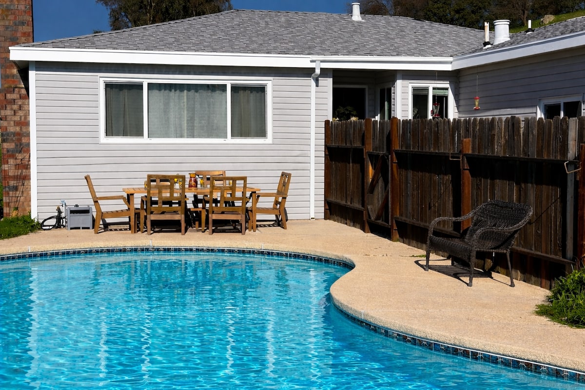 Το άνετο και ήσυχο εξοχικό μας βρίσκεται ανάμεσα σε πεύκα Ponderosa στους πρόποδες της Σιέρα Νεβάδα, 15 λεπτά από περισσότερα από 40 οινοποιεία της κοιλάδας Σεναντόα. Μπορούν να κανονιστούν ιδιωτικές γευσιγνωσίες. Η πισίνα είναι ιδιωτική για τους επισκέπτες μας και συνήθως ανοιχτή μετά την Ημέρα Μνήμης. Περίπου 50 λεπτά από τις περιοχές για σκι. Το εξοχικό μπορεί να φιλοξενήσει εύκολα 2 ζευγάρια σε δύο υπνοδωμάτια, το καθένα με ιδιωτικό μπάνιο. Διατίθεται φόρτιση ηλεκτρικού αυτοκινήτου - επιπλέον χρέωση. Η βεράντα είναι ιδανική για φαγητό έξω ή απλά για να απολαύσετε ένα ποτήρι κρασί.