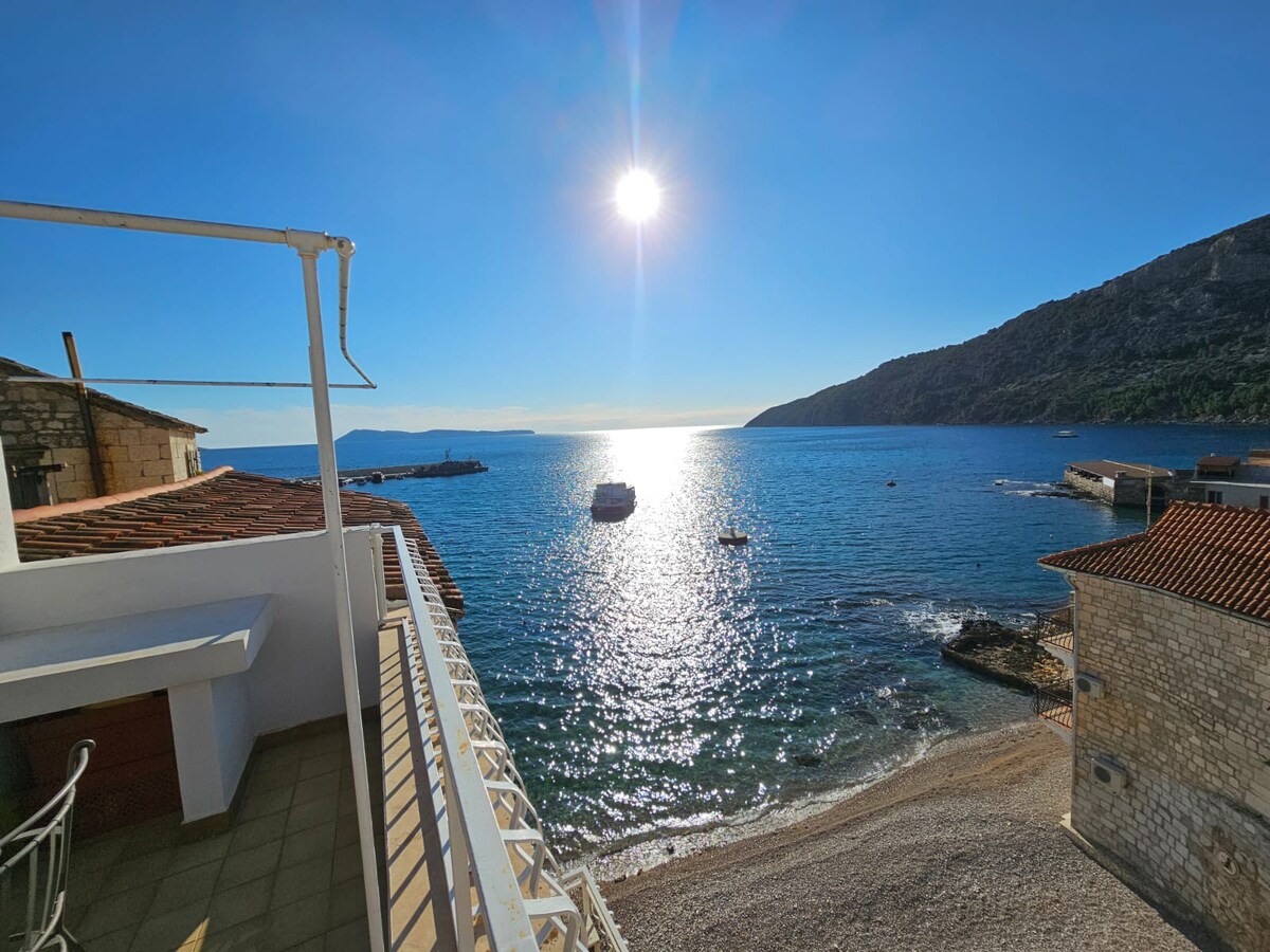 Το διαμέρισμα βρίσκεται στον δεύτερο όροφο του παλιού πέτρινου σπιτιού ακριβώς πάνω στη θάλασσα. Απέχει 5 λεπτά με τα πόδια από τον παραλιακό δρόμο και είναι ακριβώς πάνω από την παραλία. Διαθέτει πλήρως εξοπλισμένη κουζίνα, ένα υπνοδωμάτιο, σαλόνι, μπάνιο και ιδιωτικό μπαλκόνι με θέα στη θάλασσα και το νησί Biševo. Είναι εξοπλισμένο με τηλεόραση LCD, κλιματισμό, WiFi, ανεμιστήρα οροφής στο υπνοδωμάτιο (και θέρμανση τον χειμώνα, εάν χρειάζεται). Με την ενοικίαση του διαμερίσματος έρχεται η δυνατότητα χρήσης ενός διθέσιου καγιάκ κατά τη διάρκεια της διαμονής.