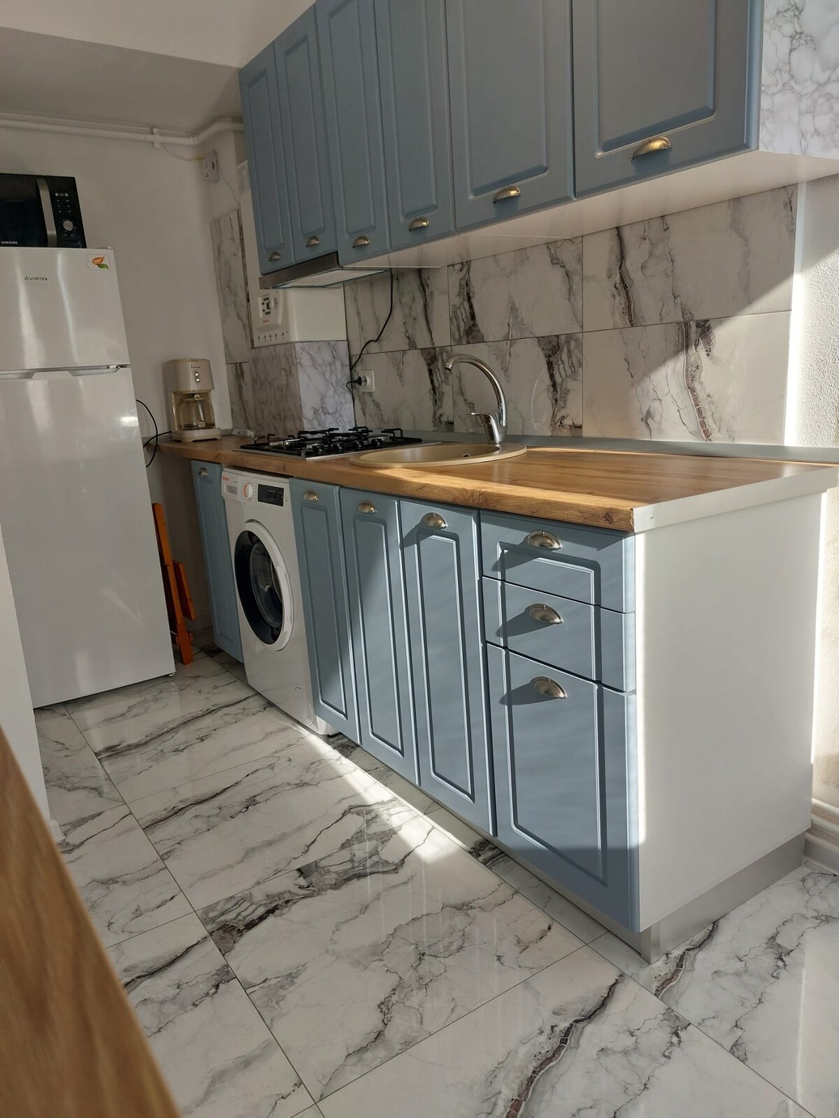 Μοντέρνο και άνετο διαμέρισμα που βρίσκεται στην κεντρική περιοχή της Κραϊόβα σε έναν ήσυχο δρόμο,εξοπλισμένο με νέα που αποτελείται από: ένα ευρύχωρο υπνοδωμάτιο εξοπλισμένο με ένα διπλό κρεβάτι, τηλεόραση, γραφείο,κομοδίνο, ένα σαλόνι με μεγάλη τηλεόραση,επεκτάσιμη γωνία, ένα όμορφα διαμορφωμένο μπαλκόνι,ένα νέο μπάνιο εξοπλισμένο με μπανιέρα, πλήρως εξοπλισμένη κουζίνα: κουζίνα,ψυγείο, πλυντήριο ρούχων, καφετιέρα, κουκούλα, πιάτα, φλιτζάνια, μαχαιροπίρουνα, μαγειρικά σκεύη κ.λπ., ένας διάδρομος με κρεμάστρα και ντύσιμο. Όλα τα έπιπλα και οι παροχές είναι καινούρια.