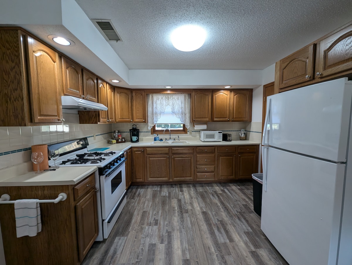 Υπέροχο ανακαινισμένο υπόγειο διαμέρισμα που βρίσκεται σε μια ήσυχη γειτονιά κοντά στο I-35. Το πρόσφατα ανακαινισμένο διαμέρισμα διαθέτει πλήρως εξοπλισμένη κουζίνα με ψυγείο, κουζίνα, φούρνο μικροκυμάτων, πλυντήριο πιάτων, καφετιέρα και μαγειρικά είδη. Απολαύστε ένα ηλεκτρικό τζάκι στο σαλόνι. Το μεγάλο υπνοδωμάτιο διαθέτει άνετο κρεβάτι queen size και μεγάλη ντουλάπα. Στο οικογενειακό δωμάτιο υπάρχει ένα διπλό κρεβάτι. Διατίθεται πάρκο για μωρά. Απολαύστε την πισίνα/το τραπέζι πινγκ πονγκ και την τηλεόραση. Κοντά σε δημόσιο γήπεδο γκολφ.
