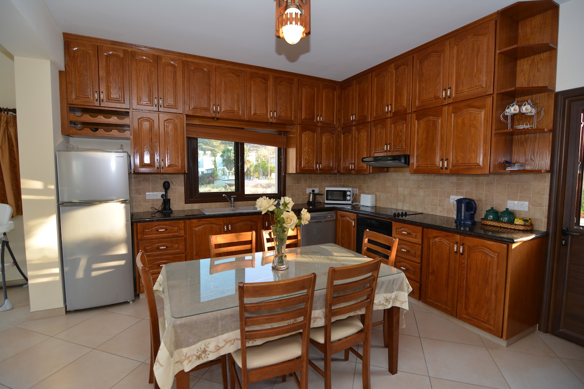 Παραθαλάσσια βίλα Pomos 3 υπνοδωματίων με ιδιωτική πισίνα που θερμαίνεται κυρίως με ηλιακή ενέργεια (εφεδρικός λέβητας με επιπλέον κόστος), γυμναστήριο, 2 πολυτελείς πολυθρόνες μασάζ και δωρεάν ίντερνετ υψηλής ταχύτητας. Έξυπνες λειτουργίες εξασφαλίζουν άνεση: ζεστό νερό όλο το 24ωρο, δωμάτια με κλιματισμό ή θέρμανση και άλλα. Όλα τα κλιματιζόμενα υπνοδωμάτια διαθέτουν τηλεοράσεις 28", ιδιωτικά μπάνια και μπαλκόνια με θέα στη θάλασσα. Το σαλόνι περιλαμβάνει τηλεόραση 50" με smart TV. Κουζίνα με φούρνο, φούρνο μικροκυμάτων, ψυγείο, τραπεζαρία για 8 άτομα, συν μπαρ - ιδανικό για οικογένειες, φίλους ή ρομαντικές αποδράσεις δίπλα στη θάλασσα.