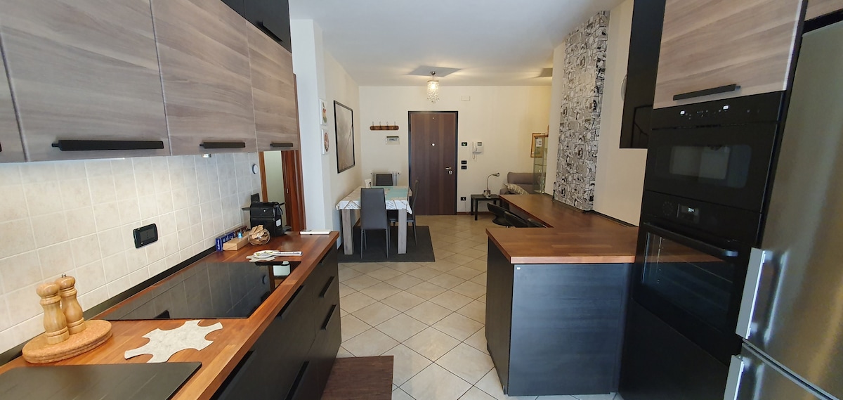Nice apartment with air conditioning, washing machine and some outside space. 100 metres from a bus stop and a shop selling fresh fruit and vegetables and everyday groceries. If you are interested in local food and wines, we can give you some advice on nearby shops and farms. Larger supermarket open 7/7 less than 10 mins away (on foot). The town's castle (on the Prosecco Hills) is a 20 mins walk away. We live close by, we speak Italian but out sons help us welcome foreign guests.