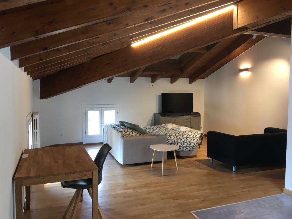 Κομψό, πλήρως ανακαινισμένο διαμέρισμα πάνω από τα διάσημα στοές της Μπολόνια, πρόσφατα ανακηρυχθεί Παγκόσμια Κληρονομιά από την UNESCO. Ο χώρος περιλαμβάνει ένα μεγάλο μπάνιο και έναν ανοιχτό χώρο με πλήρως εξοπλισμένη κουζίνα και ένα σαλόνι με ένα άνετο κρεβάτι για δύο άτομα. Κατά τη διάρκεια της αποκατάστασης, ανακαλύφθηκαν τοιχογραφίες που χρονολογούνται στον 19ο αιώνα και τώρα ενισχύονται από ένα εξελιγμένο σύστημα φωτισμού. Η εκλεπτυσμένη διακόσμηση θυμίζει την πολυτέλεια Rococo και την avant-garde της δεκαετίας του 1970.