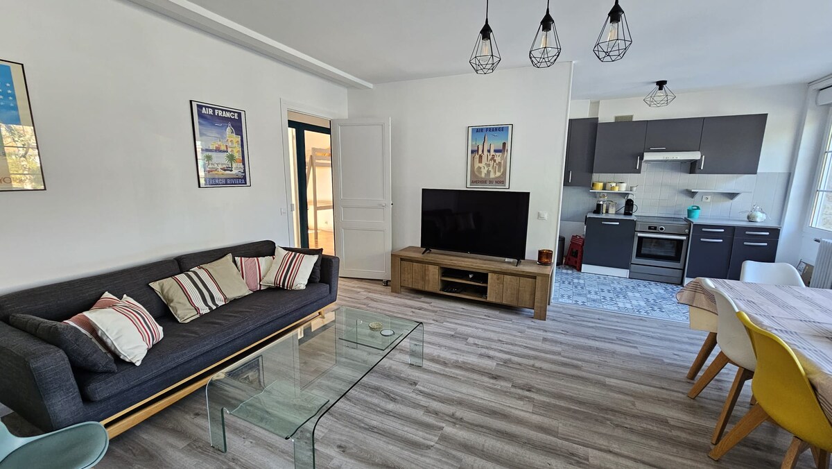 Διαμέρισμα σε ιδανική τοποθεσία στο κέντρο, 100 μ. από την παραλία, όλα είναι με τα πόδια! Αυτό το αυθεντικό διαμέρισμα σας προσφέρει άμεση πρόσβαση στην παραλία, την αγορά (200 μ.) και όλες τις τοπικές παροχές, ενώ απέχει 5 λεπτά με τα πόδια από τον σιδηροδρομικό σταθμό. Κατάλυμα για όλους τους τύπους επισκεπτών. Είτε ψάχνετε για διαμονή ζευγαριού είτε για μια μοναχική διαμονή, αυτό το διαμέρισμα θα ικανοποιήσει όλες τις προσδοκίες σας. Τα έπιπλα στο κατάστρωμα δεν εγκαθίστανται αυτόματα εκτός του καλοκαιριού.