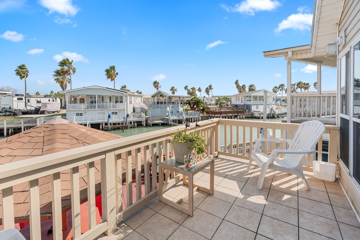 Το ιδανικό μέρος για να μαζευτείτε με την οικογένεια, τους φίλους και τον σκύλο σας, αυτό το σπίτι διαθέτει ψηλά ταβάνια και μια τεράστια ιδιωτική βεράντα με θέα στο κανάλι. Ολόκληρο το διαμέρισμα του 2ου ορόφου βρίσκεται κοντά στις παραλίες του South Padre Island και προσφέρει όλες τις ανέσεις ενός σπιτιού σε ένα χαλαρωτικό ναυτικό περιβάλλον. Αγκυροβολήστε το σκάφος σας στην τοποθεσία για τις περιπέτειες ψαρέματος στη Laguna Madre ή στον Κόλπο. Χαλαρώστε στη βεράντα ή ψαρέψτε από τη βεράντα. Παίξτε γκολφ ή παρατηρήστε πουλιά. Απολαύστε μια γεμάτη διασκέδαση οικογενειακή παραλία ή μια μέρα σε υδάτινο πάρκο, λιγότερο από τέσσερα μίλια μακριά.