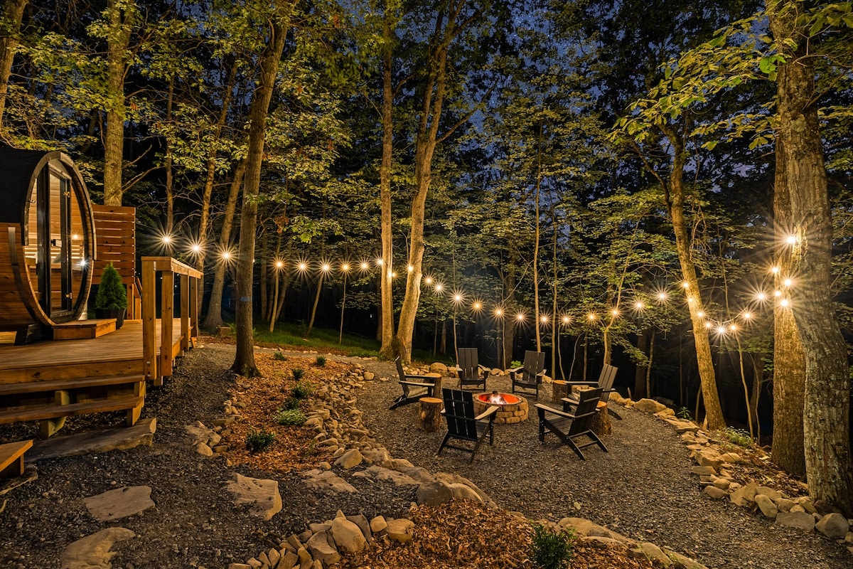 Καλώς ήρθατε στη γραφική ευρύχωρη πολυτέλεια: αυτό το πλήρως ανακαινισμένο ξυλόσπιτο, κρυμμένο σε μια μεγάλη ιδιοκτησία 200+ στρεμμάτων με ιδιωτικά μονοπάτια. Το εντυπωσιακό κατάλυμα 1 υπνοδωματίου διαθέτει: θολωτή οροφή, ολοκαίνουργια κουζίνα/συσκευές, νησίδα από γρανίτη με καθίσματα, τραπεζαρία, τουαλέτα και μπάνιο με καμπίνα ντους και μπανιέρα, υπέρδιπλο κρεβάτι, κουρτίνες συσκότισης, μεγάλα παράθυρα με θέα στη φύση, Smart TV, ψησταριά, δυνατότητα τζακούζι (διαθέσιμο τον Μάιο) και άμεση πρόσβαση στο γαλήνιο δάσος και στα μονοπάτια πεζοπορίας.