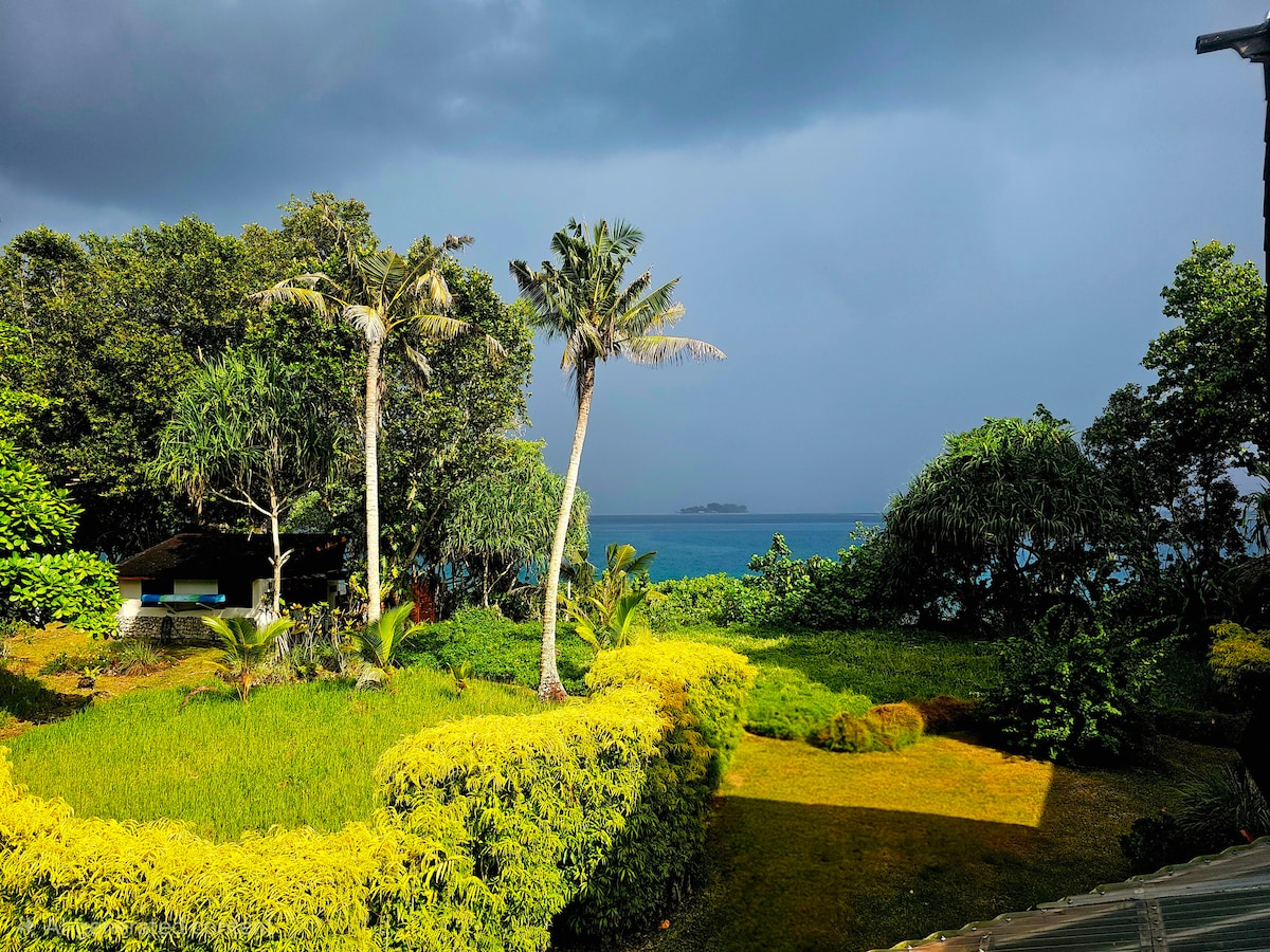 Αυτό το αυτόνομο μπανγκαλόου βρίσκεται στην πλαγιά του λόφου με υπέροχη θέα στον ωκεανό και είναι ιδανικό για ζευγάρια, οικογένειες ή μεμονωμένους επισκέπτες που θέλουν ένα άνετο καταφύγιο στη φύση. Το δωμάτιο έχει τρία κρεβάτια queen size σε τρία υπνοδωμάτια, δύο σε μια σοφίτα. Τα χαρακτηριστικά περιλαμβάνουν ιδιωτικό μπάνιο στον κάτω όροφο και τουαλέτα στον επάνω όροφο, άνετο σαλόνι, μικρή κουζίνα, αποθήκη και ευρύχωρη βεράντα. Διατίθεται δωρεάν Wi-Fi, υπηρεσία πλυντηρίου και χώρος στάθμευσης εκτός δρόμου. Η πρόσβαση γίνεται μέσω ενός κεκλιμένου διαδρόμου και σκαλοπατιών με ανηφόρα.