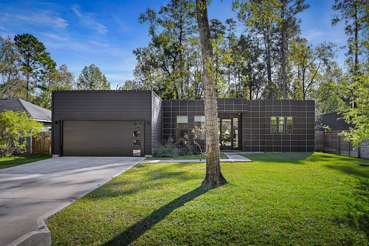 Αυτός ο μοναδικός χώρος έχει το δικό του στιλ. Μοντέρνο, πολυτελές κτήμα ανοιχτής ιδέας. Ολόκληρο σπίτι με γυάλινες συρόμενες πόρτες από πάνω προς τα κάτω. Λίγα λεπτά μακριά από όλα τα όμορφα αξιοθέατα του The Woodlands Texas. Το ιδανικό μέρος για να έρθετε και να απολαύσετε μια πολυτελή διαμονή μόνοι σας ή με φίλους, υπάρχουν πολλά υπνοδωμάτια με το δικό τους μπάνιο! Εργαστείτε από το σπίτι στον ειδικό ενσωματωμένο χώρο εργασίας μας με όμορφη θέα στο δάσος. Δημιουργήστε τη δική σας διάθεση με ολόκληρο το σπίτι να τροφοδοτείται από τα φώτα Philips HUE.