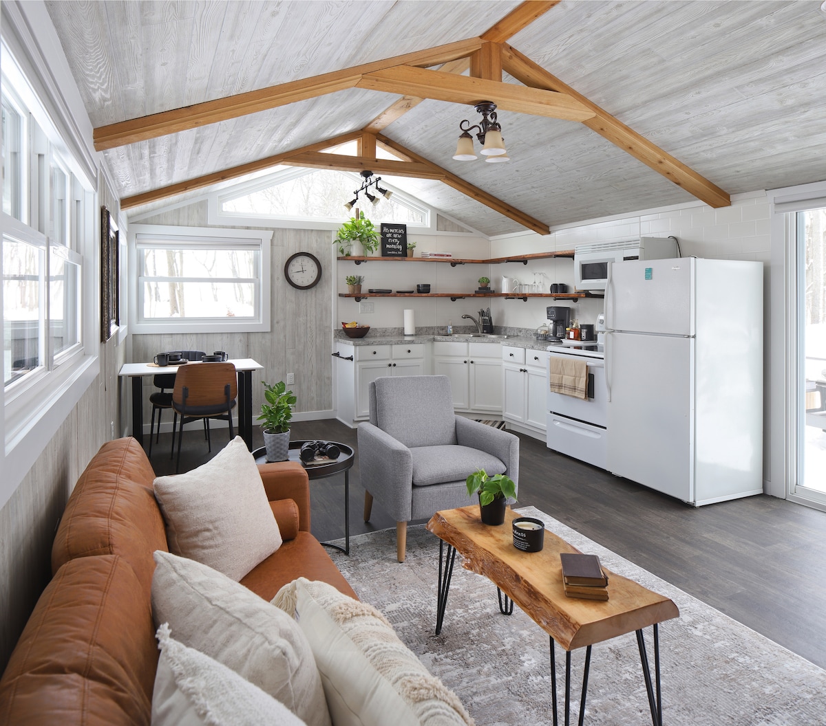 Απολαύστε τη φύση μέσα σε αυτό το γοητευτικό ξυλόσπιτο που διαθέτει όλες τις απαραίτητες παροχές, όπως ένα κρεβάτι queen size, βασικά είδη κουζίνας, φωτιά, ψησταριά και βεράντα. Περιτριγυρισμένο από 160 στρέμματα δασών, αυτό το ξυλόσπιτο προσφέρει ένα ήσυχο καταφύγιο, ενώ βρίσκεται μόλις είκοσι λεπτά από το Harbor Country του Μίσιγκαν. Χαλαρώστε μέσα με ένα βιβλίο ή βγείτε έξω για να απολαύσετε χρυσούς αμμόλοφους, έργα τέχνης και αντίκες, τοπικά τρόφιμα, μονοπάτια πεζοπορίας και πάνω από είκοσι οινοποιεία κατά μήκος του θυελλώδους, δεντρόφυτού αυτοκινητόδρομου Red Arrow.