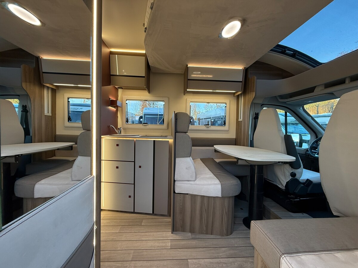 Αυτό το αυτοκινούμενο μπορεί να φιλοξενήσει έως 4 άτομα και είναι κατάλληλο για διακοπές με φίλους ή συγγενείς. Είναι εξοπλισμένο με πρακτικά πρόσθετα, όπως μια τέντα, ένα τεράστιο πίσω γκαράζ και μια σχάρα ποδηλάτου. Στο πίσω κρεβάτι μπορούν να κοιμηθούν άνετα 2 άτομα και στο μπροστινό ανυψωτικό κρεβάτι μέχρι 2 ακόμη άτομα. Στην κουζίνα θα βρείτε όλα όσα χρειάζεστε για την παροχή καθ 'οδόν: φούρνο 3 εστιών, νεροχύτη και ψυγείο με κατάψυξη. Το μπάνιο διαθέτει νιπτήρα, τουαλέτα και ντους.