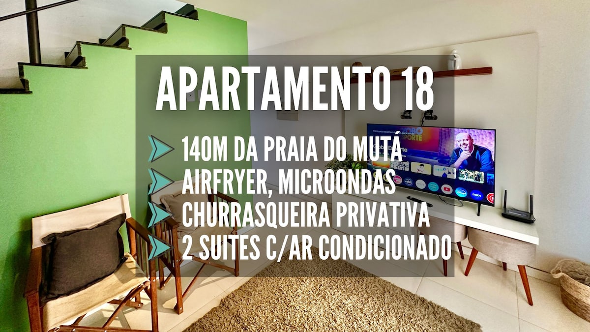 Duplex apartment, with a privileged location - 100m from Taperapuan beach and next to the Axé Moi tent. Το διαμέρισμα αποτελείται από 2 υπνοδωμάτια με κλιματισμό, wi-fi, τραπεζαρία, πλήρως εξοπλισμένη αμερικανική κουζίνα, ιδιωτικό μπαλκόνι και εξωτερικό χώρο. Η πολυκατοικία διαθέτει πισίνα και χώρο μπάρμπεκιου. Χωρητικότητα έως 6 άτομα και καλυμμένος χώρος στάθμευσης. Το σπίτι μας είναι κατάλληλο για ζευγάρια, παρέες φίλων, οικογένειες και ταξιδιώτες για επαγγελματικούς σκοπούς. Θα είναι χαρά μας να σας έχουμε ως επισκέπτη μας! 🏠🌴☀️❤
