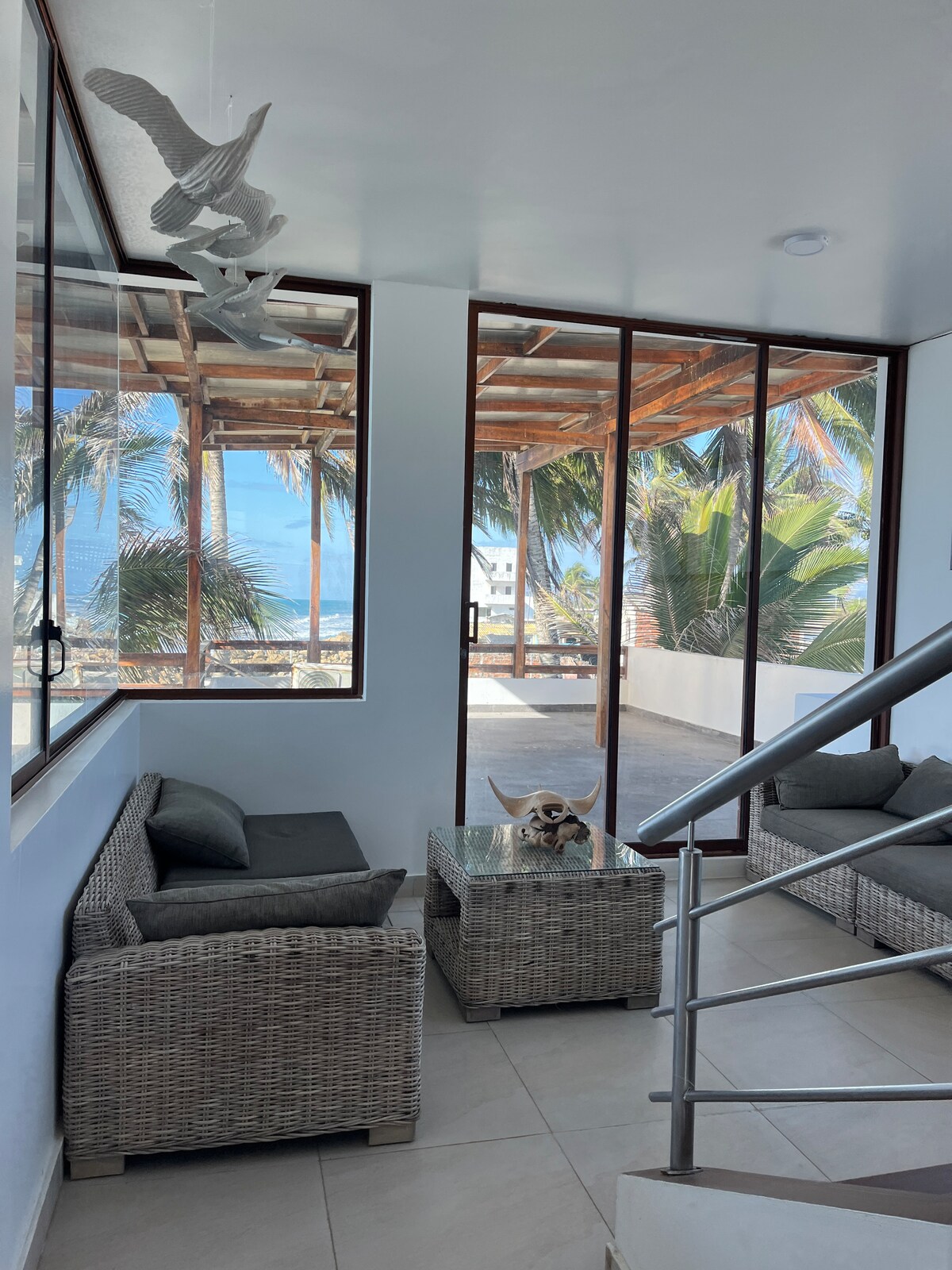 Όμορφο εξοχικό σπίτι μπροστά στη θάλασσα, με έναν θεαματικό κοινωνικό χώρο που βλέπει στον Ειρηνικό Το σπίτι διαθέτει όλες τις ανέσεις για μια άνετη διαμονή με την οικογένεια, απολαμβάνοντας το εξαιρετικό κλίμα του Μανάμπι και χαλαρώνοντας στο ιδιωτικό τζακούζι χωρίς να αποσυνδεθείτε από τον κόσμο με WiFi. Απέχει 5 λεπτά από το αεροδρόμιο, 15 λεπτά από το Mall del Pacífico και 30 λεπτά από τη Santa Marianita.