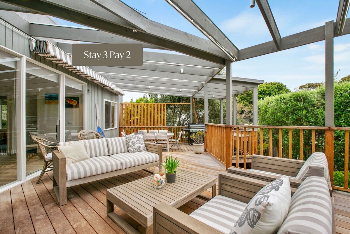 Σημείωση Μόνο δύο επισκέπτες (όχι παιδιά) μπορούν να μείνουν/κοιμηθούν σε αυτήν την καταχώρηση σύμφωνα με τους κανόνες σπιτιού. Το διώροφο σπίτι μας στο υψηλότερο σημείο της παραλίας Tyrone και απέχει μόλις 3 λεπτά από την όμορφη παραλία Tyrone, 10 λεπτά από το δημοφιλές Peninsula Hot Springs. Ανοίξτε τις πόρτες και ξυπνήστε με μια υπέροχη θέα στον κόλπο, κάντε μια πρωινή βόλτα σε μία από τις καλύτερες παραλίες της Χερσονήσου ή καθίστε στην τεράστια βεράντα με ένα βιβλίο που απολαμβάνει την απρόσκοπτη πανοραμική θέα στο νερό.