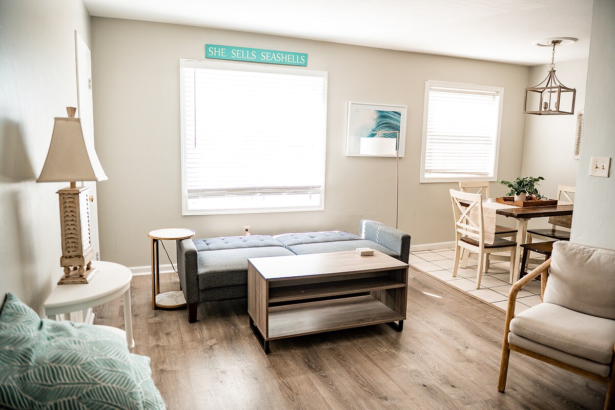 Η οικογένειά σας θα είναι κοντά σε ό,τι χρειαστεί σε αυτό το κεντρικό, άνετο διαμέρισμα. 1 υπνοδωμάτιο, 1 μπάνιο μόλις ένα τετράγωνο από την παραλία. Κρεβάτι queen size στο κύριο υπνοδωμάτιο και καναπές-κρεβάτι και φουτόν στο σαλόνι. (κοιμούνται άνετα 4 άτομα, θα μπορούσαν να κοιμηθούν έως 6 άτομα) Χαριτωμένη, πλήρως εξοπλισμένη κουζίνα και τραπεζαρία για 2 άτομα. Σε κοντινή απόσταση με τα πόδια από τον δημοφιλή πεζόδρομο και την παραλία, εστιατόρια, μπαρ, καταστήματα και κοντινές δραστηριότητες και αξιοθέατα. Ιδανικό για μια απόδραση ζευγαριών ή μια μικρή οικογενειακή διαμονή!