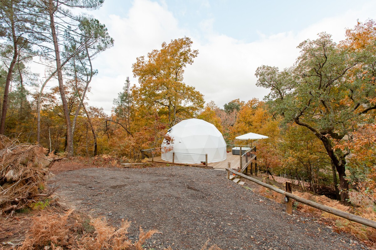 Ζήστε μια αξέχαστη διαμονή στο δάσος του Colares: ένας άνετος θόλος όπου η άνεση συναντά τη φύση. Με ηλεκτρικό ρεύμα, ζεστό νερό και ένα άνετο κρεβάτι, αυτό το ήσυχο καταφύγιο είναι ιδανικό για χαλάρωση. Απολαύστε την ιδιωτική βεράντα που περιβάλλεται από πράσινο και ησυχία. Λίγα λεπτά από τη Σίντρα και τις παραλίες, είναι η ιδανική απόδραση για ζευγάρια και ταξιδιώτες που αναζητούν γοητεία, ηρεμία και κάτι πραγματικά ξεχωριστό.