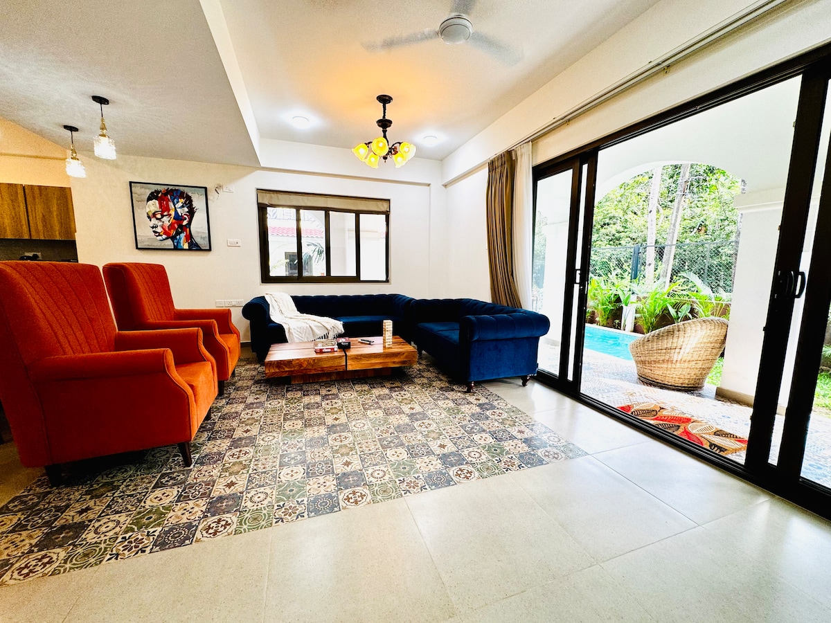 Ευρύχωρο 2BHK Candolim | Πισίνα • Περπατήστε μέχρι την παραλία •