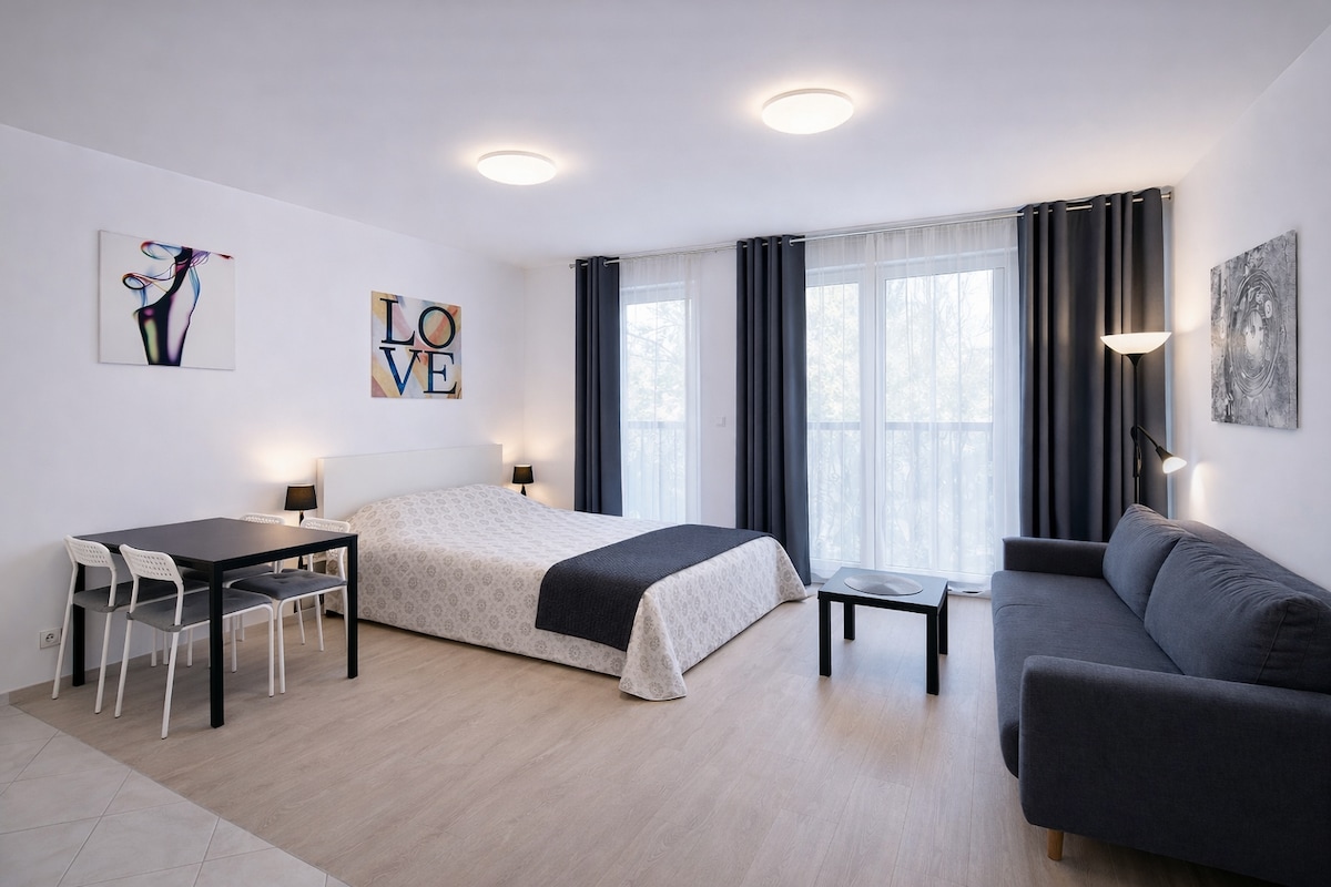 Spacious and comfortable apartment in a quiet residential residence, surrounded by cafés, restaurants and shops. The apartment offers 2 bedrooms, 2 balconies, a fully equipped kitchen, a bathtub, a separate toilet and fast Wi-Fi. A rare advantage in Prague: free private garage parking for 2 cars included. Excellent tram and metro access with a quick connection to the Old Town and airport. Perfect for couples, families, business travellers and long stays.