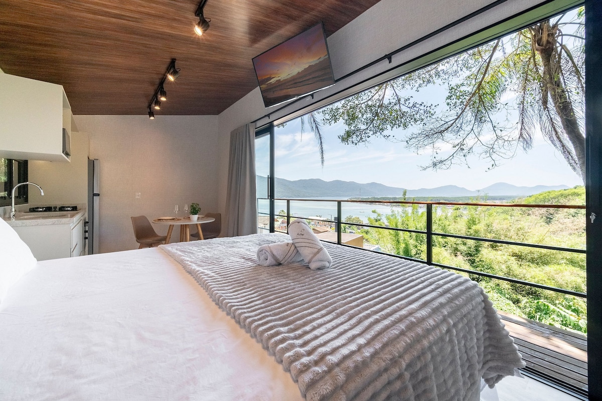 Μια ιδιωτική σοφίτα με εκπληκτική θέα στη λίμνη Conceição και τη θάλασσα, ιδανική για ζευγάρια, που βρίσκεται στη γειτονιά Canto dos Araças, στη μέση του Ατλαντικού Δάσους. Μια ζεστή τοποθεσία, ταυτόχρονα ήσυχη και ιδιωτική, μόλις 2,5 χιλιόμετρα από το κέντρο της γειτονιάς Lagoa, 300 μέτρα από τη λίμνη Conceição, στην αρχή του μονοπατιού προς την Costa da Lagoa. Ένα πανοραμικό, ρομαντικό σπίτι ιδανικό για ζευγάρια. 5 λεπτά με το αυτοκίνητο από το κέντρο της λιμνοθάλασσας. 15/20 λεπτά με το αυτοκίνητο από την παραλία Mole/Joaquina/Galheta/Barra.