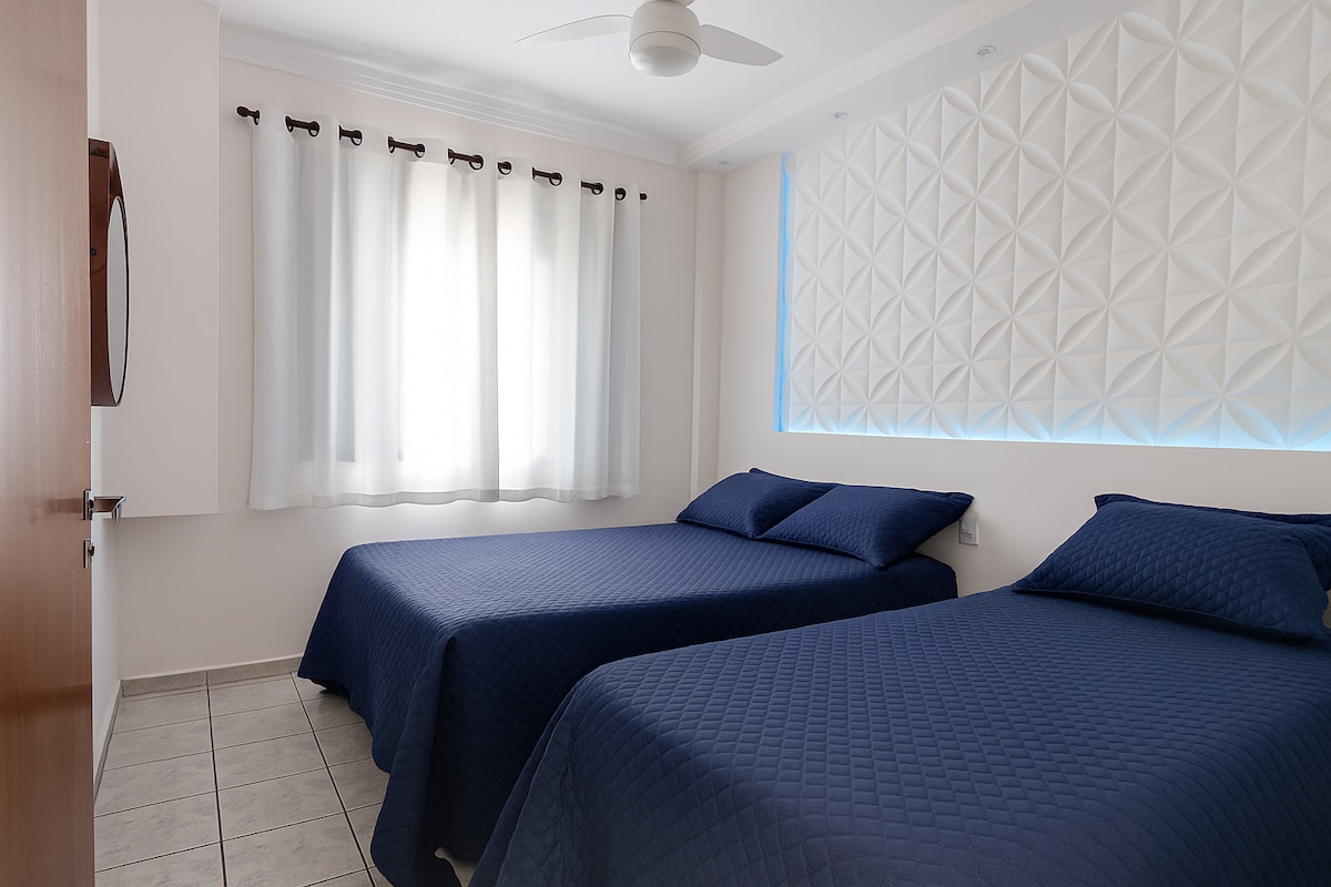 Χαλαρώστε με όλη την οικογένεια σε αυτό το ήσυχο κατάλυμα. Διαθέτουμε έναν άνετο χώρο κατάλληλο για ξεκούραση και αναψυχή. Δωμάτια με κλιματισμό, υπνοδωμάτιο με τηλεόραση 65", σαλόνι με ανεμιστήρα οροφής, τηλεόραση 55" με Netflix και Wi-Fi, πλήρως εξοπλισμένη κουζίνα με συσκευές. Μόλις 50 μέτρα από την παραλία, δίπλα στην πιο διάσημη πιτσαρία της Praia Grande, με εστιατόριο και φούρνο δίπλα, εξαιρετική τοποθεσία. Το κτίριο διαθέτει επίσης αίθουσα παιχνιδιών, πισίνα και χώρο για συναντήσεις.