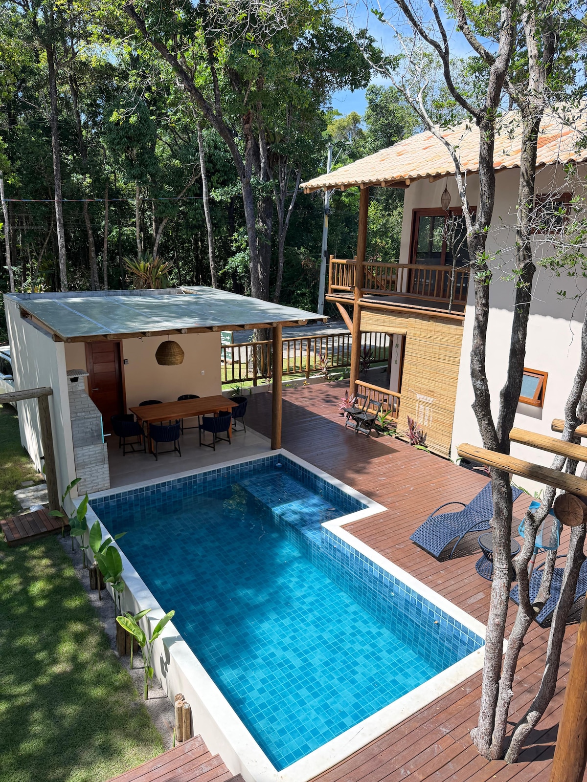CASA MANGABA AZUL Έχουμε ένα ιδιωτικό οικόπεδο 1.125 τ.μ., περιφραγμένο, με γκαζόν, δάσος, με επεξεργασία νερού, ιδιωτική πισίνα και χώρο γκουρμέ, που βρίσκεται στο υποδιαίρεση Vila Angélica 1 χλμ από το κέντρο της Barra Grande, όπου βρίσκονται η Vila de Barra Grande και η αποβάθρα, 1,5 χλμ από την Ponta do Muta, 7 χλμ από την Taipu de Fora και 800 μέτρα από την παραλία Bombaça. Είναι ένας πολύ ζεστός, άνετος και ήσυχος χώρος για οικογένεια και φίλους. Το σπίτι είναι επιπλωμένο, με κλιματισμό και κουζίνα με σκεύη.