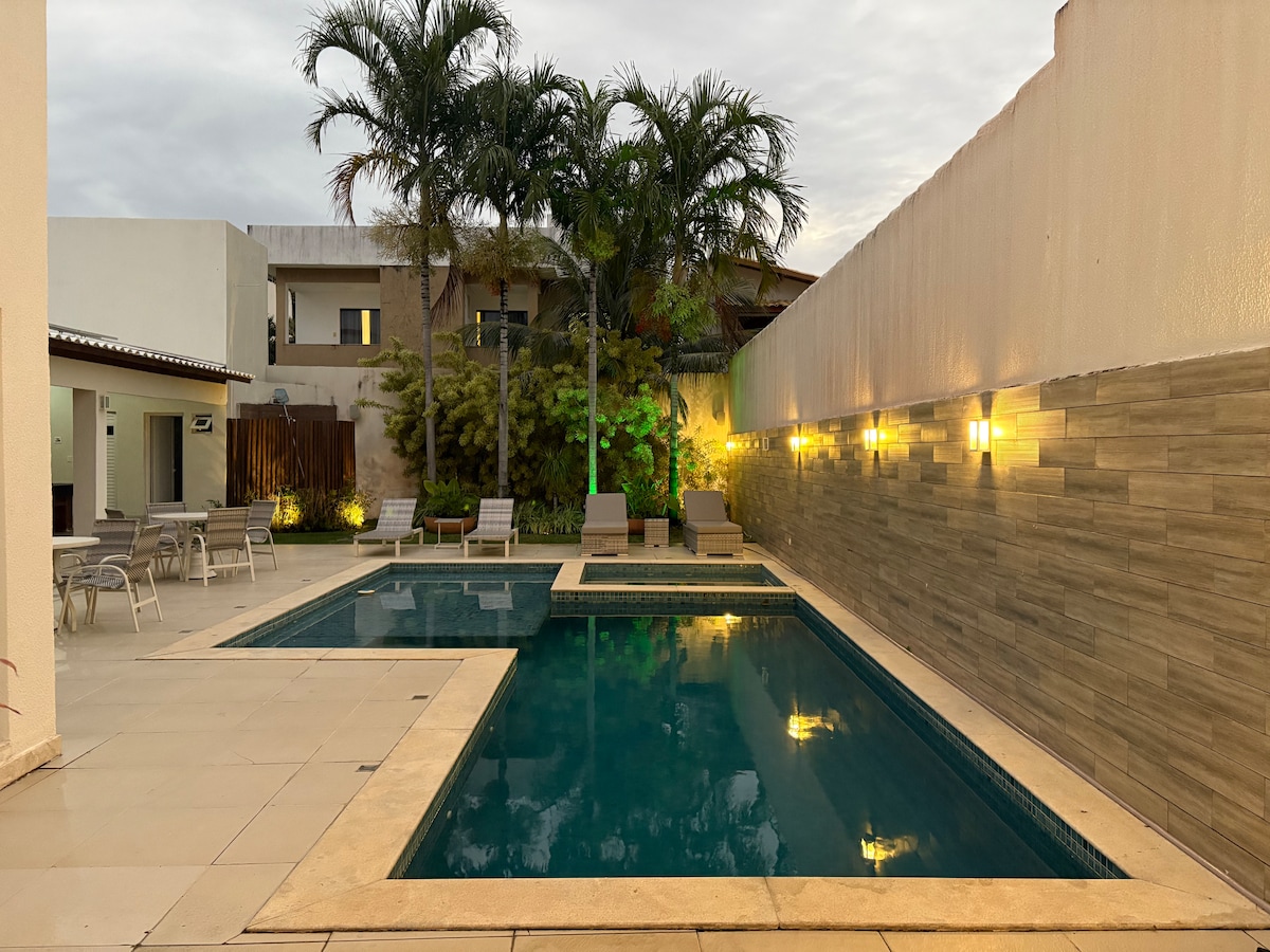 Σπίτι 2 λεπτά με τα πόδια από μια παραλία με γαλάζια σημαία, 158 μ. 5 σουίτες με κλιματισμό, ντουλάπες και 100% συσκότιση για 10 άτομα (4 διπλά και 2 μονά κρεβάτια) Πισίνα, μπάρμπεκιου, κήπος, πλυντήριο πιάτων Περιλαμβάνεται καθημερινός καθαρισμός πισίνας και σπιτιού, εκτός από τις Κυριακές HS Internet 500 mb Ασφάλεια κοινότητας με κάμερες και περιπολία 24 ώρες το 24-ωρο. Η πρόσβαση στο σπίτι παρακολουθείται Ποδηλατόδρομος με θέα στον ωκεανό, αθλητικά γήπεδα Έως 10 επισκέπτες άνω των 2 ετών Η κατανάλωση ενέργειας και νερού κάλυπτε έως 40 R$/ημέρα. Το επιπλέον ποσό θα χρεωθεί κατά την αναχώρηση.