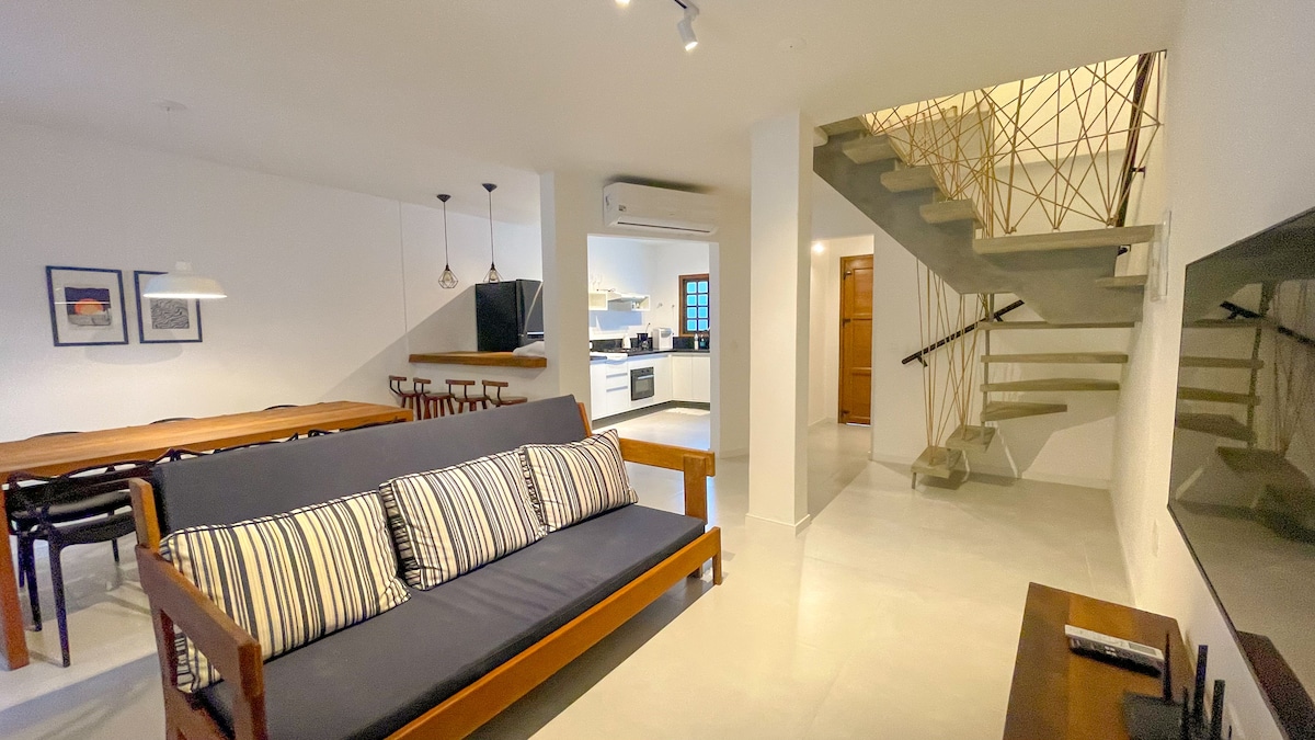 Θα γίνονται δεκτά μόνο μικρά κατοικίδια, με μέγιστο βάρος 7 κιλά, με χρέωση 100,00 Ρεάλ, μετά από έγκριση της οικοδέσποινας. Αεριζόμενο σπίτι, με σαλόνι, τραπεζαρία, χωλ και αμερικανική κουζίνα. Διαθέτει 2 δωμάτια στο ισόγειο, που εξυπηρετούνται από 1 WC, και στον επάνω όροφο μια σουίτα και σοφίτα. Νέα έπιπλα και συσκευές. Χώρος αναψυχής με μπάρμπεκιου, φούρνο πίτσας, πισίνα και τουαλέτα. Διαθέσιμες καρέκλες παραλίας και ομπρέλες. Κλιματιζόμενα δωμάτια / αίθουσες. Γραφείο για εργασία από το σπίτι: Wi FI (δωρεάν) Τηλεόραση: Netflix (δωρεάν)