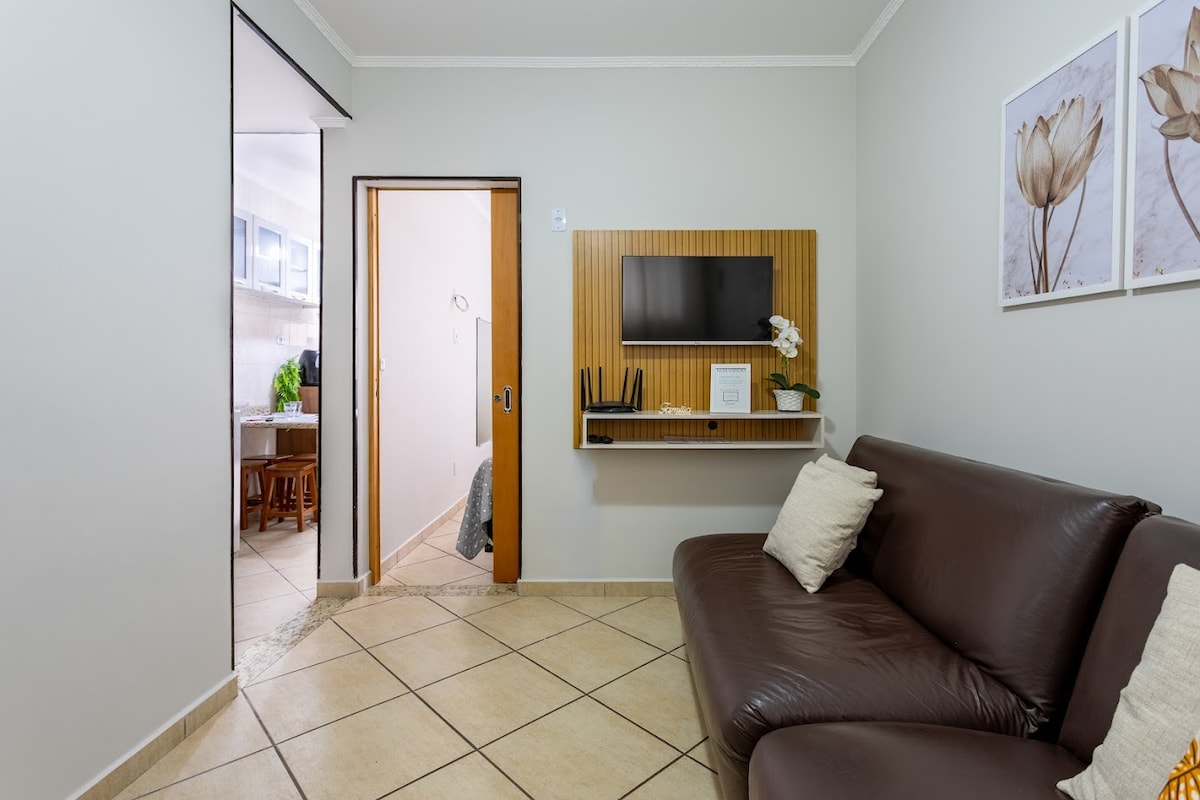 UN075 - Cinema em casa! Moderno a 2 min da praia