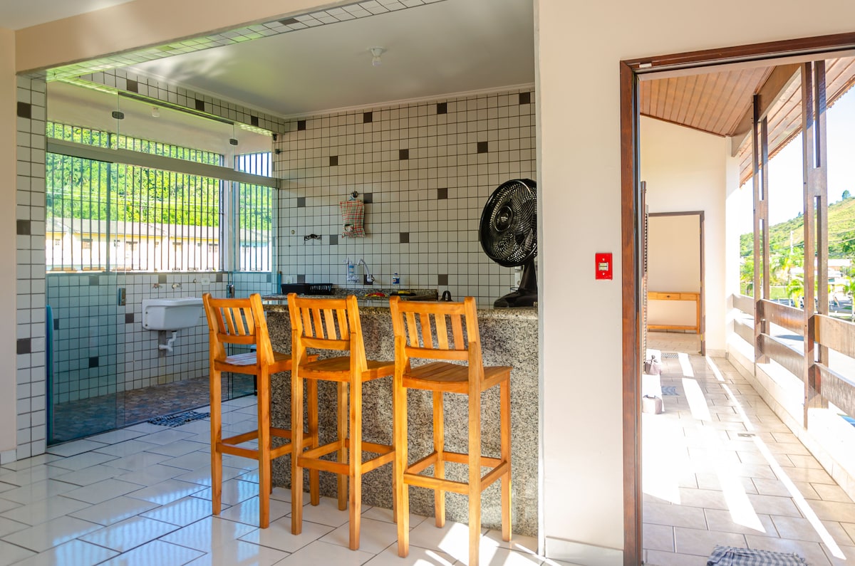 Ο χώρος μας σχεδιάστηκε με αγάπη για να δημιουργήσει μια ζεστή ατμόσφαιρα για τους επισκέπτες μας! Προσφέρουμε καρέκλες παραλίας, ομπρέλες, ψυγειάκια, σκεύη μπάρμπεκιου, πλήρως εξοπλισμένη κουζίνα και στεγασμένο χώρο στάθμευσης για να αξιοποιήσετε στο έπακρο το ταξίδι σας! Βρισκόμαστε λίγα βήματα από την παραλία στο κέντρο (1 λεπτό με τα πόδια), 5 λεπτά από το Mirante do Camaroeiro και 15 λεπτά από το Martim de Sá ή το Indaiá! Περιοχή πολύ κοντά σε όλα, σούπερ μάρκετ, περίπτερα, εστιατόρια, είναι δυνατό να κάνετε τα πάντα με τα πόδια!