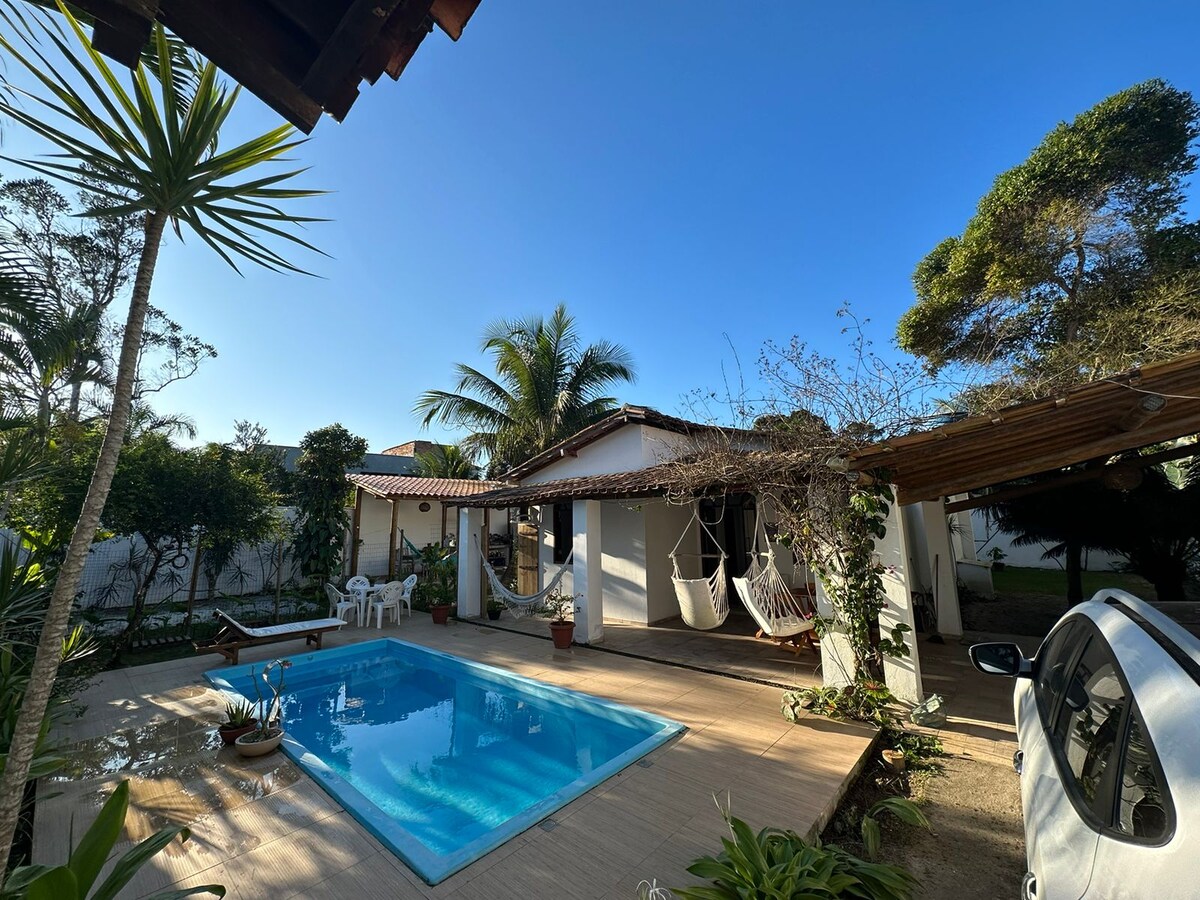 Άνετο παραθαλάσσιο σπίτι | 10 λεπτά από την παραλία Ιδανικό για οικογένειες που αναζητούν άνεση και πρακτικότητα, που βρίσκεται στην κεντρική περιοχή του Πόρτο Σεγκούρο της Μπαΐα. Το σπίτι αποτελείται από: - Ρουστίκ εξωτερικός χώρος με πισίνα, κήπο και ντους. - 03 σουίτες (μία με μπαλκόνι) OBS: 03 διπλά κρεβάτια, 01 μονό κρεβάτι και 2 μονά στρώματα. - Σαλόνι, ενσωματωμένη τραπεζαρία με κουζίνα, χώρο εξυπηρέτησης και τουαλέτα.