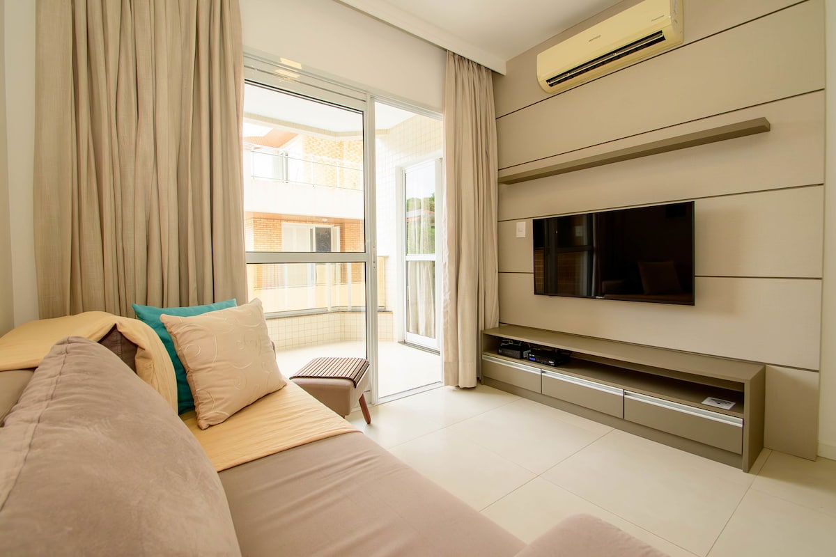 Υπέροχο διαμέρισμα ανάμεσα στη θάλασσα και τη φύση, 2 υπνοδωμάτια με ηλεκτρικά στόρια και κλιματισμό, 2 μπάνια, τηλεόραση 60" 4k με Netflix, ανοιχτό HBOmax, Xbox One, Wifi, τηλεόραση σε όλα τα δωμάτια, μπάρμπεκιου στο μπαλκόνι, έπιπλα σχεδιασμένα για όλους τους χώρους, 2 στεγασμένες θέσεις στάθμευσης, καρέκλες παραλίας και ομπρέλα. Πισίνα για ενήλικες και παιδιά με παραλία και ημι-ολυμπιακή λωρίδα, γήπεδο για πολλά αθλήματα, γυμναστήριο, αίθουσα παιχνιδιών με μπιλιάρδο και παιχνιδοθήκη. Διαμέρισμα για να υποδεχτείτε την οικογένειά σας