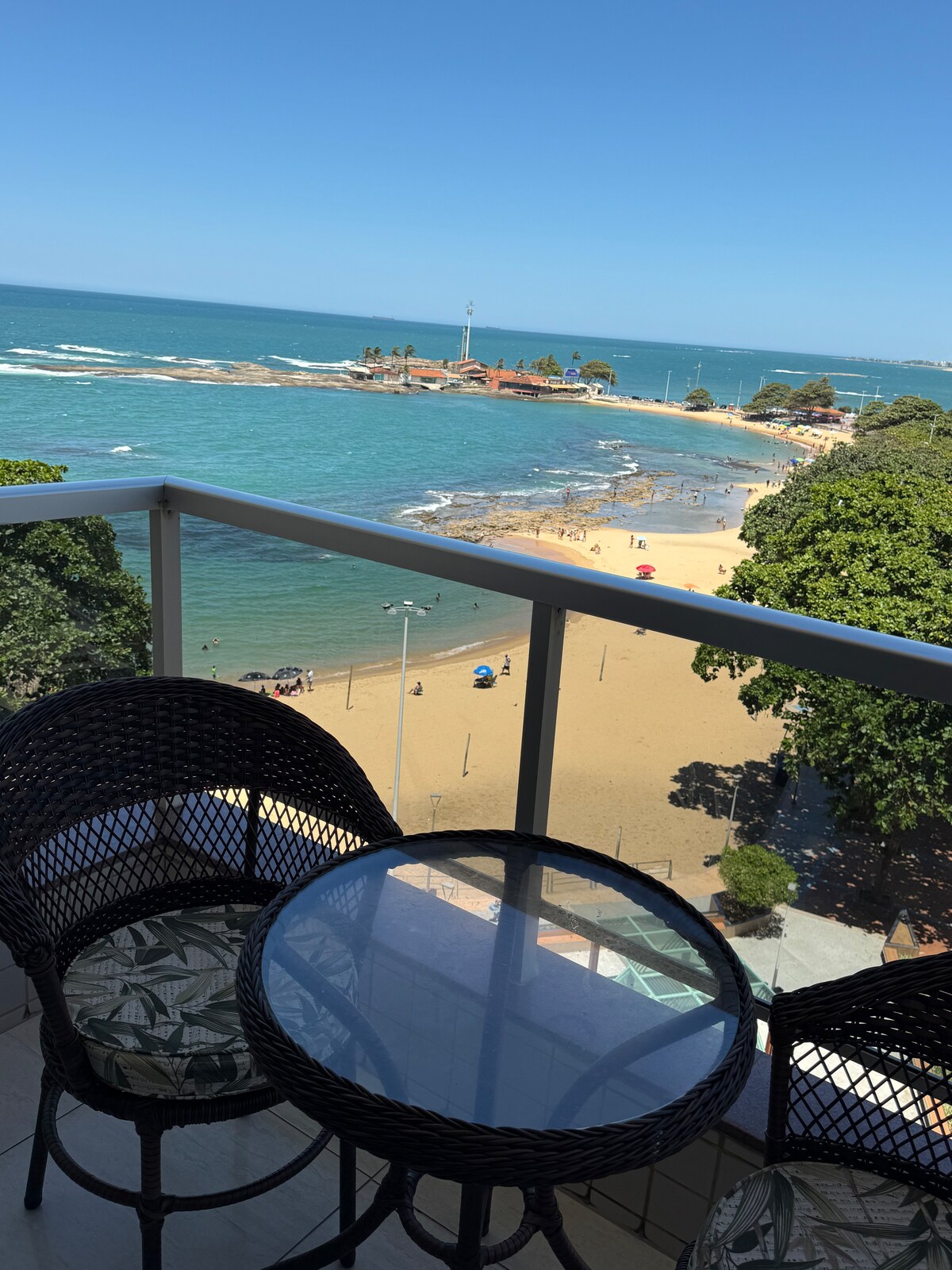 Apartamento com vista mar incrível, em ambiente moderno, sofisticado e silencioso, com excelente conforto para descanso. Conta com balanço suspenso na janela com vista para o mar, cozinha completa com eletrodomésticos de primeira qualidade, TVs de 56” na sala e no quarto, sofá-cama queen confortável, além de ar-condicionado e lava e seca. Ideal para quem busca conforto, privacidade e uma experiência moderna em Guarapari.