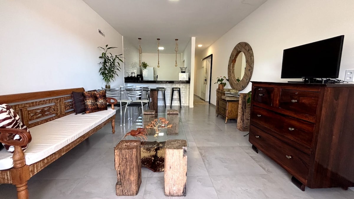 Το διαμέρισμα είναι νέο, μοντέρνο, πολύ άνετο. Υπάρχει κουζίνα εξοπλισμένη με καφετιέρα, βραστήρα, ηλεκτρική τοστιέρα, μίνι μπαρ και φούρνο μικροκυμάτων, καθιστώντας δυνατή την παρασκευή πρωινού και γρήγορων σνακ. Δεν υπάρχει κουζίνα. Εξαιρετική τοποθεσία, κεντρική γειτονιά κοντά σε εστιατόρια, πλατείες και 600 μέτρα από την παραλία. Κλιματιζόμενο περιβάλλον. Είναι χαρά μου να σας καλωσορίζω και να κάνω τη διαμονή σας ευχάριστη. Smria, είστε στη Μπαΐα! Διπλωμένο χαμόγελο, είστε στο Πράντο! Καλώς ήρθατε!