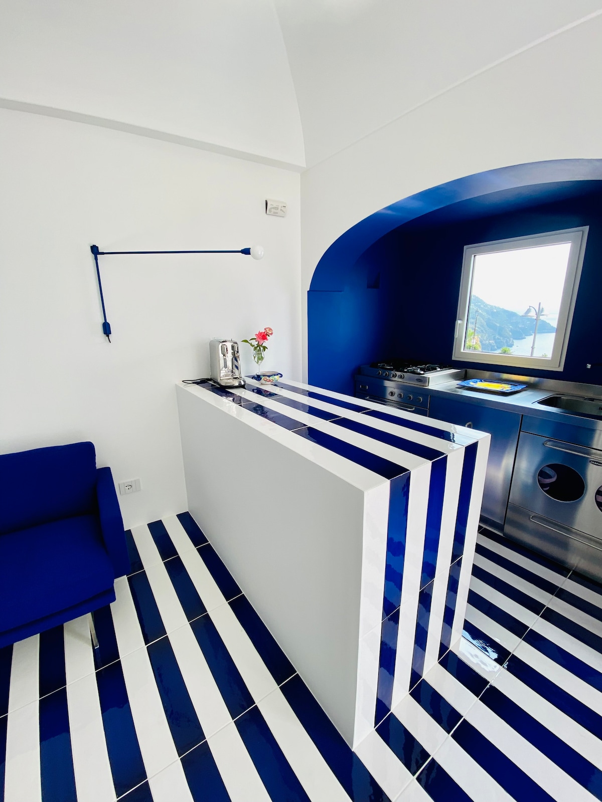 497 Aspettando l'Alba is an apartment with a sea-view terrace and a private pool. Featuring beautiful blue Vietri majolica tiles, the apartment includes a large double bedroom, spacious bathroom, fully equipped kitchen, bright living room, and a terrace with a sea-view pool. It's ideal for 2 to 4 people and is located in the historic part of Praiano, in a quiet and authentic setting. Between the sea and the mountains, nearby are the wonderful Path of the Gods and Praia beach.