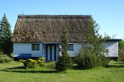 Το όμορφα διακοσμημένο σπίτι με αχυροσκεπή βρίσκεται στο Neuendorf-Heide, ένα μικρό χωριό στο Saaler Bodden μεταξύ των Χανσεατικών πόλεων Rostock και Stralsund. Η πρώην αγροικία, που χτίστηκε το 1850, προσφέρει χώρο για 5 άτομα με 125 τ.μ. χώρο διαβίωσης και 1000 τ.μ. οικόπεδο. Οι 3 όροφοι του εξοχικού και οι 3 κοινόχρηστοι κήποι προσφέρουν χώρο για κοινωνικές δραστηριότητες, αλλά και για χαλάρωση. Μια μέρα στην παραλία τελειώνει με τη χαρά ενός άνετου σπιτιού.