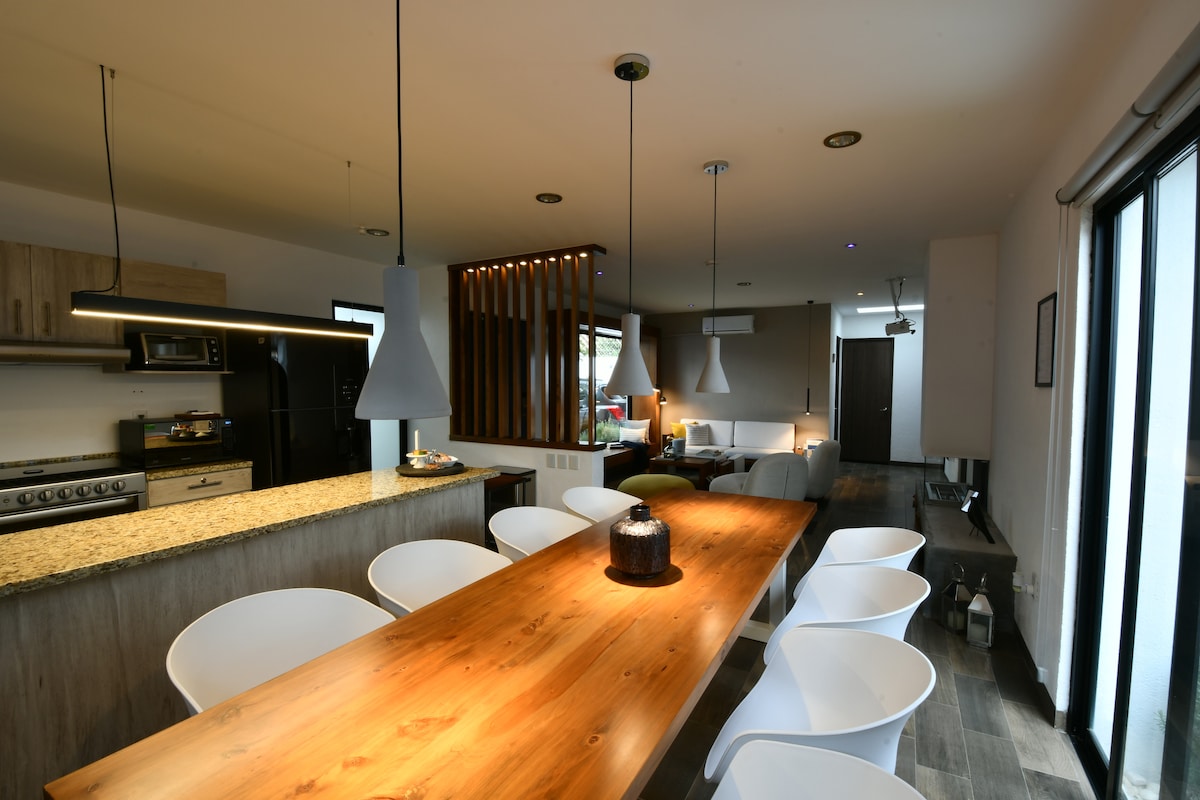 Όμορφο και άνετο σπίτι σε σοφίτα σε μια πολύ ωραία, ασφαλή και ήσυχη κατοικημένη περιοχή! Πολύ κοντά στο κέντρο του Τεκισκιαπάν, με εύκολη πρόσβαση στα αξιοθέατα αυτού του όμορφου «pueblo mágico»! Η θερμαινόμενη πισίνα με ηλιακό πάνελ ακριβώς μπροστά από το σπίτι προσφέρει μια πολύ ευχάριστη εμπειρία. Μαζί μας θα βρείτε έναν χώρο που αποπνέει απίστευτη ηρεμία! • Ο σύγχρονος σχεδιασμός και οι φωτεινοί χώροι δημιουργούν μια ζεστή ατμόσφαιρα για οικογένειες και φίλους • Άνετη βεράντα μπροστά με έπιπλα εξωτερικού χώρου
