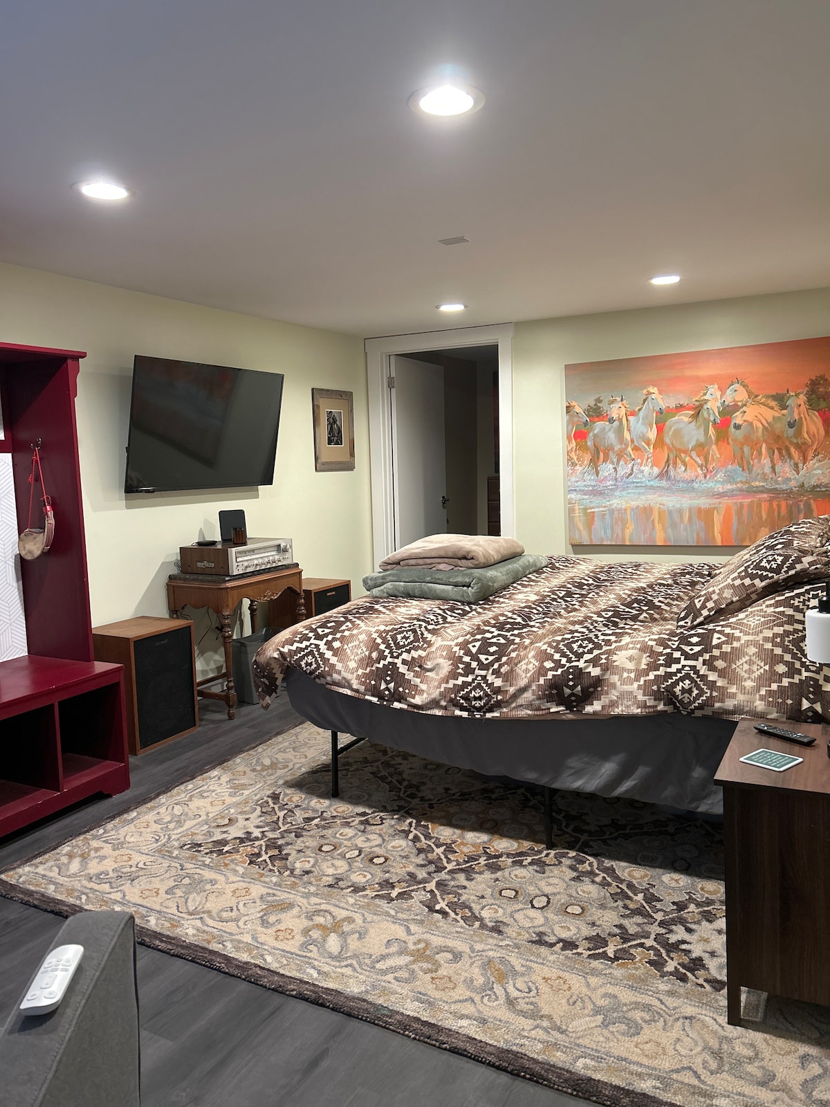 This is a separate & private suite, with free parking for one vehicle & a private entrance. Walking distance to Courthouse/Whiskey Row, about 1.25 miles & Prescott Resort 1 miles. 4.1 miles to Watson lake. Equipped with a full size refrigerator, induction cooktops, oven/air frier, dishwasher, microwave, dinnerware, drinkware & utensils. Also provided are kitchen, and bed & bath linens. Additional pillows, blankets, towels, pack-n-play, iron, picnic basket & more available on request