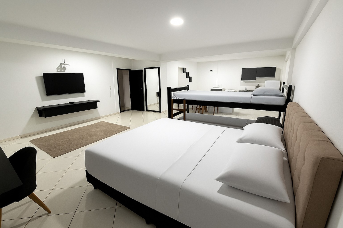 Κρυφτείτε σε ένα ολοκαίνουργιο, ευρύχωρο και κομψό στούντιο! Ο χώρος μας βρίσκεται κοντά στα κύρια νοσοκομεία της πόλης και στην πανεπιστημιούπολη Unoeste I και είναι ιδανικός για όσους αναζητούν άνεση και πρακτικότητα. Το στούντιο διαθέτει ένα άνετο διπλό κρεβάτι, κλιματισμό και πλήρως εξοπλισμένη κουζίνα, εξοπλισμένη με όλα τα σκεύη που χρειάζεστε για να προετοιμάσετε τα γεύματά σας. Επιπλέον, οι επισκέπτες έχουν πρόσβαση σε ένα κοινόχρηστο δωμάτιο πλυντηρίου με πλυντήριο και στεγνωτήριο, εξασφαλίζοντας ακόμη μεγαλύτερη ευκολία.