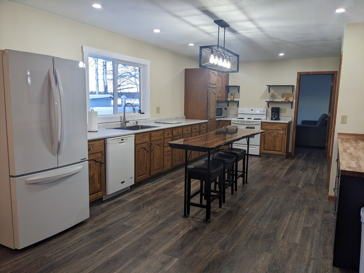 Bird song, wind, sun on grass. ✨ Zielke Haus is your refuge. :) This very unique farmhouse reprise holds all the space you need to unwind while enveloped by the natural world. All of this, with all of the amenities of modern life. Two private bedrooms, a futon in the open loft, two attic beds, and room for air mattresses as well, Zielke Haus invites you to wander through the charms of the North, summer and winter. Yes, we have wifi. It's very good. ;)