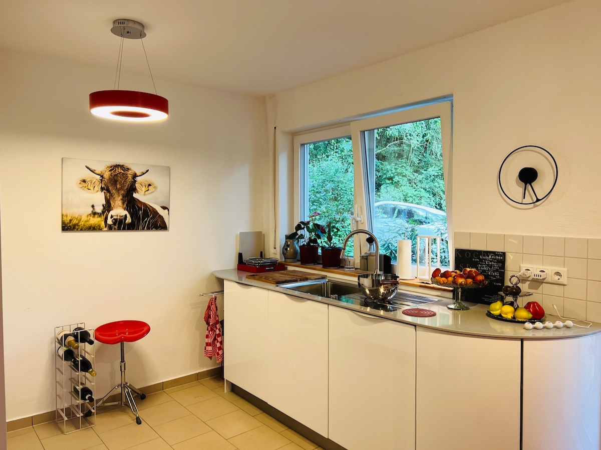 Μαζί μας μπορείτε να χαλαρώσετε σε ένα διαμέρισμα που είναι διακοσμημένο με αγάπη, με θέα στον κήπο, να απολαύσετε τον ήλιο στο μπαλκόνι και να ακούσετε τα πουλιά να κελαηδούν. Μετά από μια βόλτα στη φύση, ένας άνετος καναπές σας προσκαλεί να χαλαρώσετε και να παρακολουθήσετε τηλεόραση και να ανακτήσετε τις δυνάμεις σας το βράδυ στο άνετο διπλό κρεβάτι. Στην καλά εξοπλισμένη κουζίνα μπορείτε να απολαύσετε τον καφέ σας και να ικανοποιήσετε την πείνα σας. Ανυπομονούμε να σας καλωσορίσουμε.