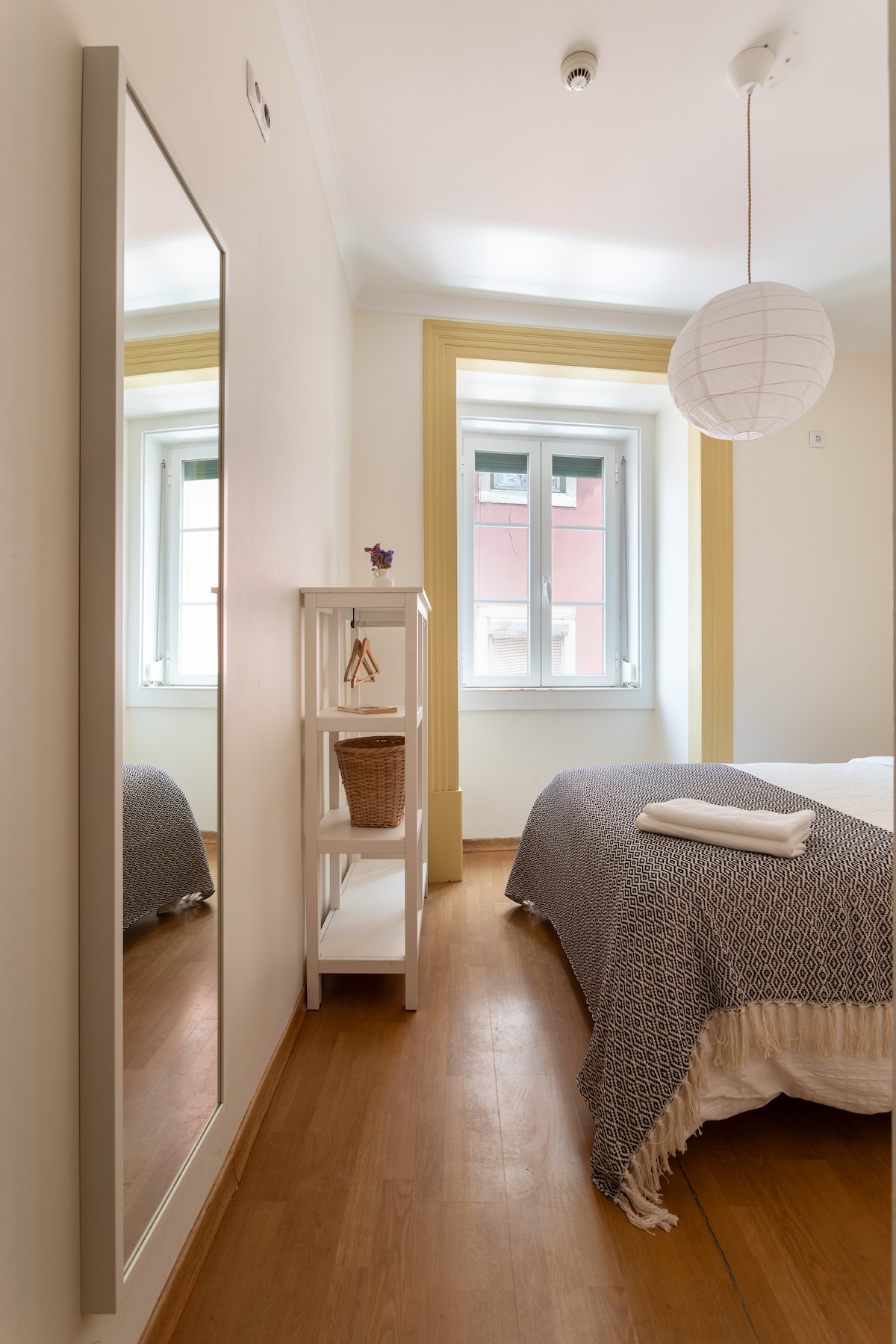 This stylish bedroom has been recently renovated and newly furnished. It has plenty of natural light and two little balconies facing the beautiful "Rua da Alegria". Thanks to noise reduction windows and blackout blinds, you'll sleep peacefully. You will have a private bathroom and access to a shared kitchenette where you can prepare a coffee or simple meals. Thanks to a self-check-in system and clear instructions you'll easily gain access to your bedroom via a key lockbox.