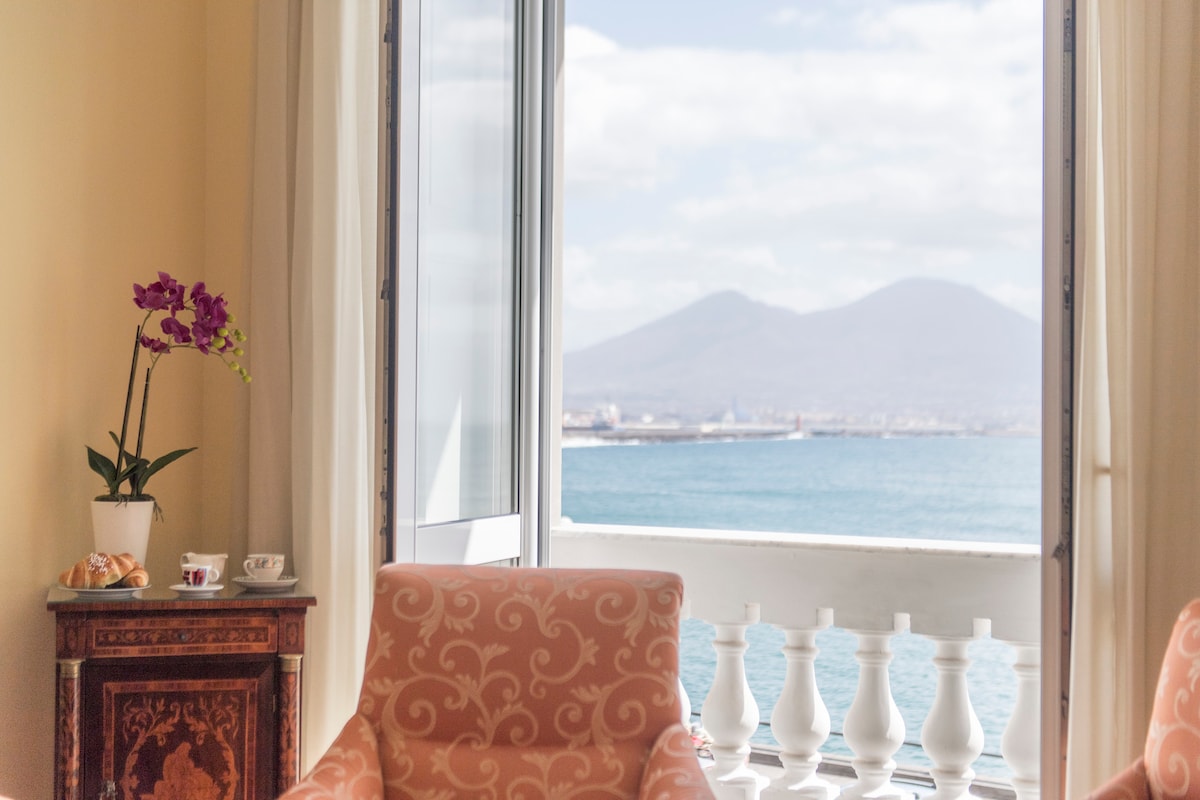 Από την HouseinNaples Τέταρτος όροφος ΧΩΡΊΣ ασανσέρ. Γοητευτικό στούντιο με διπλή βεράντα και εκπληκτική θέα στη θάλασσα. Εξαιρετικά γρήγορο Wi-Fi, πλυντήριο ρούχων, έξυπνη τηλεόραση 55 ιντσών, ντους στη βεράντα με θέα στη θάλασσα, πλήρες μπάνιο, πλυντήριο πιάτων, εξοπλισμένη κουζίνα. Βρίσκεται στο πιο ήσυχο σημείο της περιοχής Chiaia, κοντά στο Corso Vittorio Emanuele, 5 λεπτά με τα πόδια από το κεντρικό τελεφερίκ που θα σας μεταφέρει σε λίγα λεπτά στη Via Toledo, το κέντρο του τουρισμού στη Νάπολη.