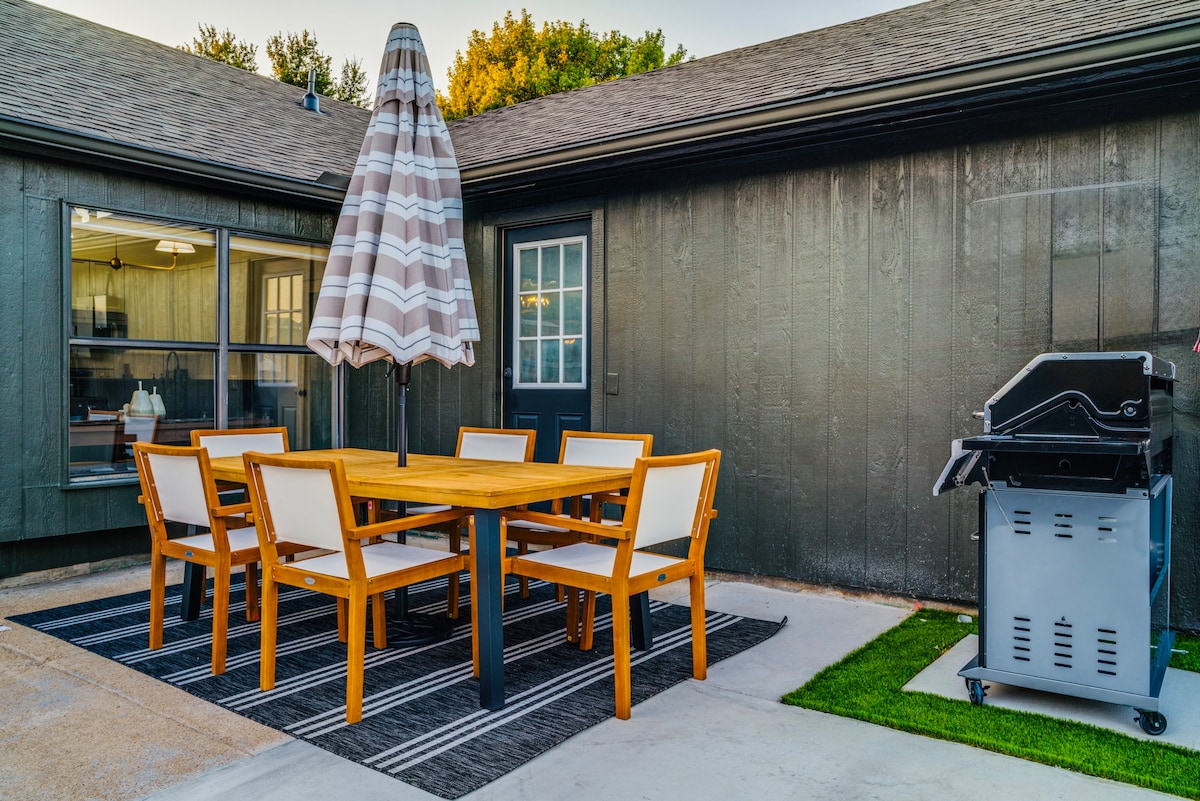 Ζήστε την εμπειρία του ιστορικού κέντρου McKinney σε αυτό το μπανγκαλόου 3 υπνοδωματίων που συνδυάζει τη γοητεία με τη σύγχρονη ζωή, ιδανικό για ζευγάρια ή οικογένειες. Μόλις ένα τετράγωνο από την πλατεία της πόλης, διαθέτει ένα ευρύχωρο σαλόνι με πλήρως εξοπλισμένη κουζίνα και τραπεζαρία γεμάτο φυσικό φως. Τα εκτεταμένα παράθυρα βλέπουν σε μια άνετη, ιδιωτική πίσω αυλή και αίθριο με καθίσματα και ψησταριά αερίου. Οι παροχές περιλαμβάνουν wi-fi υψηλής ταχύτητας, βελούδινα κλινοσκεπάσματα, κλιματισμό, παγομηχανή με βότσαλα και πλυντήριο και στεγνωτήριο. Κάντε κράτηση τώρα!
