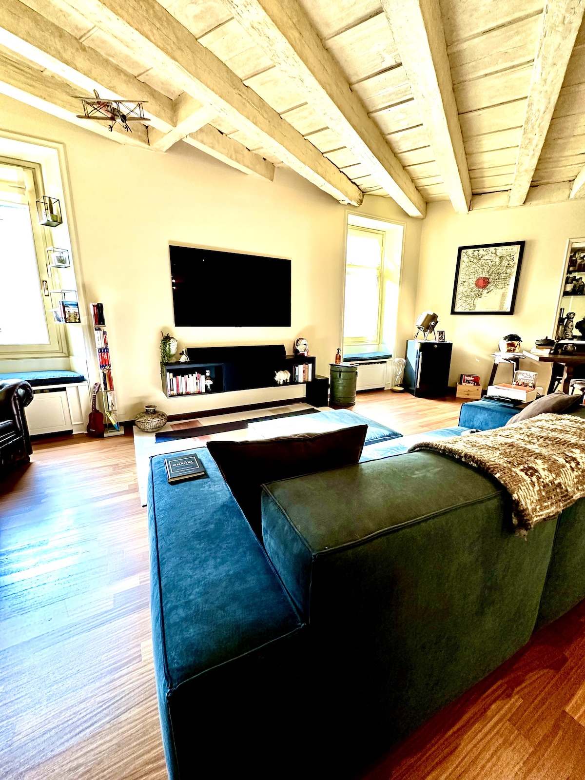 Questa luminosa mansarda è arredata con tutto ciò che serve per un piacevole soggiorno: una cucina spaziosa con l'occorrente per cucinare, induzione, microonde, Smart Tv, Netflix, wifi, cassa stereo Bluetooth, aria condizionata, lavatrice, un comodo letto matrimoniale sotto un meraviglioso affresco del XII sec. È disponibile l'intero appartamento al terzo piano senza ascensore, in centro, nel quartiere più vivo della città, a cinque minuti dalla metropolitana.