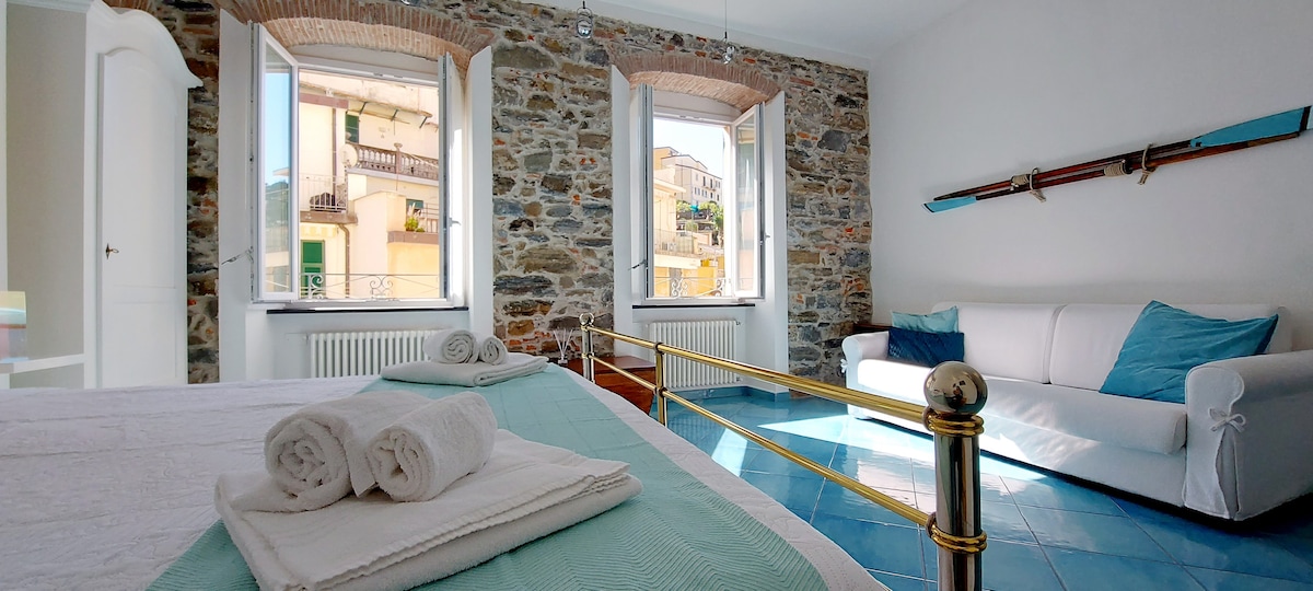 CODICE CITRA 011024-LT-0007 ... A wide, airy, sunny, high ceiling studio at exactly the heart of the village of Riomaggiore, ideally situated for visiting the Cinque Terre. The railway station, the boats, the shuttles, the paths at a walking distance of few meters. All kinds of shops at the same distance.The studio has been renovated in 2016, keeping when possible, the original features (1600); it is well soundproofed and air-conditioned and equipped with all comforts, with a large bathroom