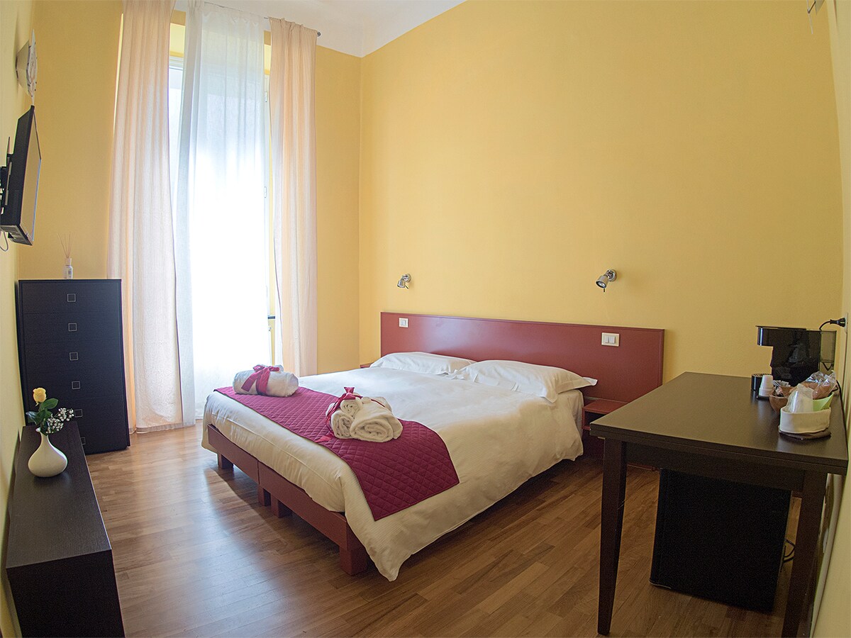Stanza con bagno condiviso con un'altra camera in pensione famigliare con facile accesso al mare e vicina al centro, ai ristoranti, caffè e negozi. Si scende al mare in 10 minuti e in 3 alla piazza centrale. All'interno della stanza ci sono 3 letti singoli. Stanza al 1° piano molto tranquilla con vista mare e montagna. Per raggiungere la struttura ci sono delle scale. Tassa di soggiorno di 3 euro al giorno a persona per massimo 3 giorni da pagare all'arrivo.
