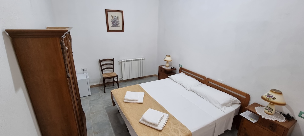 Appartamento dotato di tutti i comfort: è composto da un ampio salone di mq. 100, con angolo cottura, caminetto, divano letto doppio, sala da pranzo, due camere da letto con letto matrimoniale, un bagno completo con doccia. Arredamento rustico, molto ben rifinito. Ampio giardino privato con gazebo con tavolo per pranzo all'aperto, barbecue. La piscina è a disposizione degli ospiti. Parcheggio all'interno del giardino, e per i più appassionati disponibile equitazione per passeggiate.