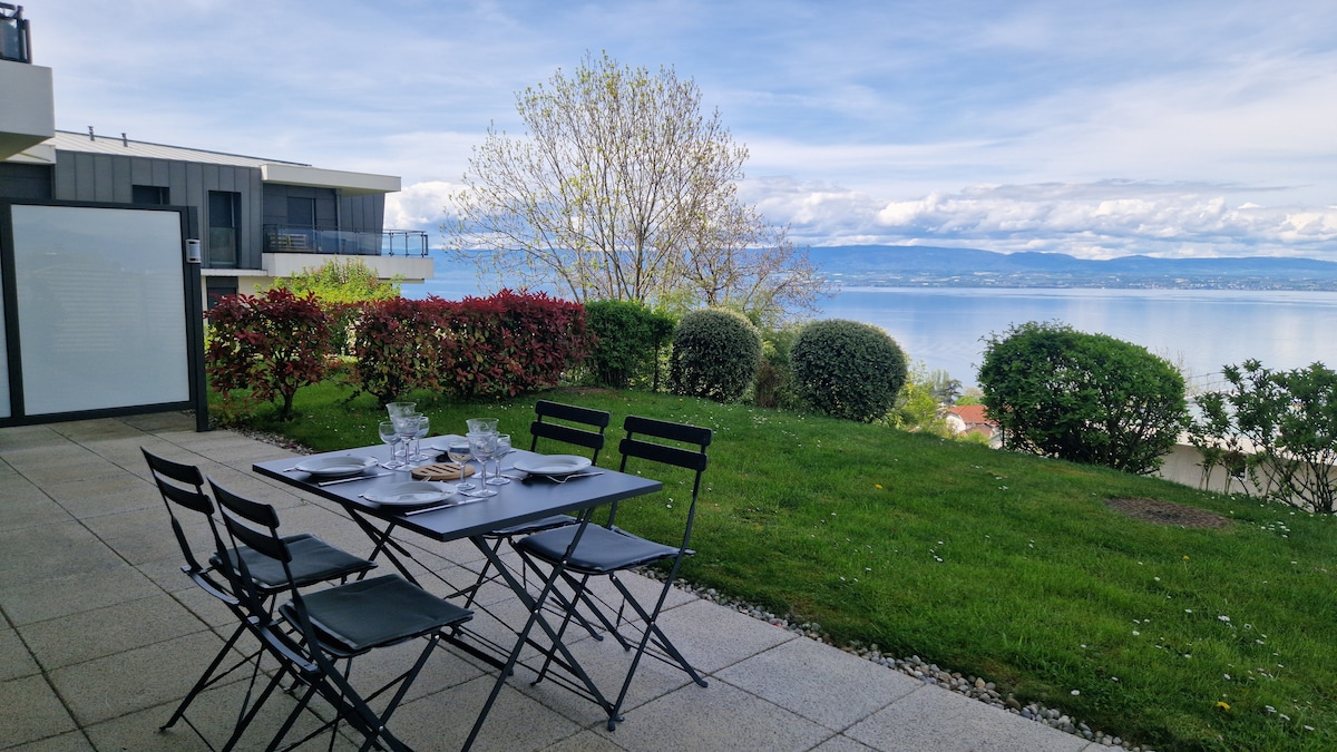 Appt récent 30 m bord du lac Léman proche Evian