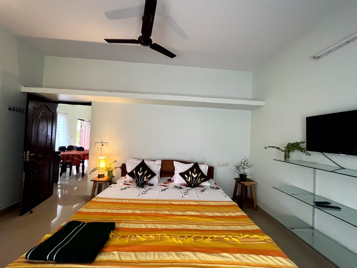 Το σπίτι σας στο Auroville έχει διακοσμηθεί με γούστο σε θέμα Chettinad. Κάθε γωνιά του σπιτιού μας είναι στο Instagramworthy με πολύχρωμους εσωτερικούς χώρους, τέχνη kolam, διακόσμηση με αντίκες και πολλά άλλα. Το 1BHK μπορεί να φιλοξενήσει άνετα έως 4 άτομα με ένα κρεβάτι κούνιας και καναπέ-κρεβάτι στο σαλόνι. Υπάρχουν πολλά εστιατόρια σε κοντινή απόσταση, η κουζίνα μας είναι προσεκτικά εξοπλισμένη για όλες τις ανάγκες σας - είτε για να φτιάξετε μια γρήγορη ομελέτα ή ένα πλήρες ινδικό γεύμα. Γι 'αυτό, καθίστε άνετα, χαλαρώστε και πιείτε τον καφέ σας.