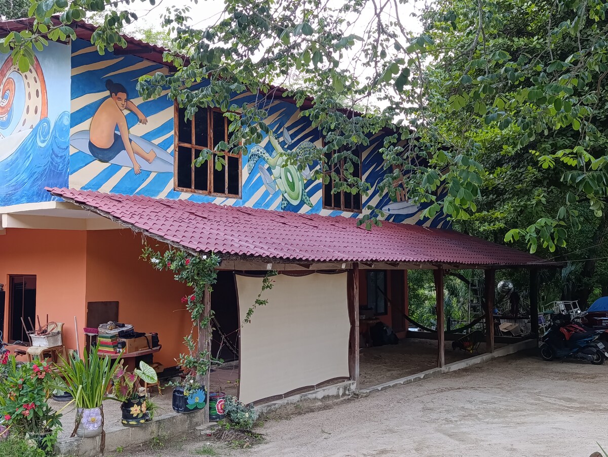 La Cabaña Rinconcito, unos pocos metros de la playa, tiene 2 camas matrimoniales, hamacas, WIFI, agua purificada, su propia cocina equipada, refri, y baño privado. Rodeado con los arboles, sus animalitos y pájaros, uno se siente parte de la naturaleza. Si te gusta acampar, esta rústica cabaña con su techo de palma será para tí. La recamara tiene un mosquitero sobre su cómoda cama, y también la cama abajo en la sala. Hay vista al mar desde las hamacas en la sala.
