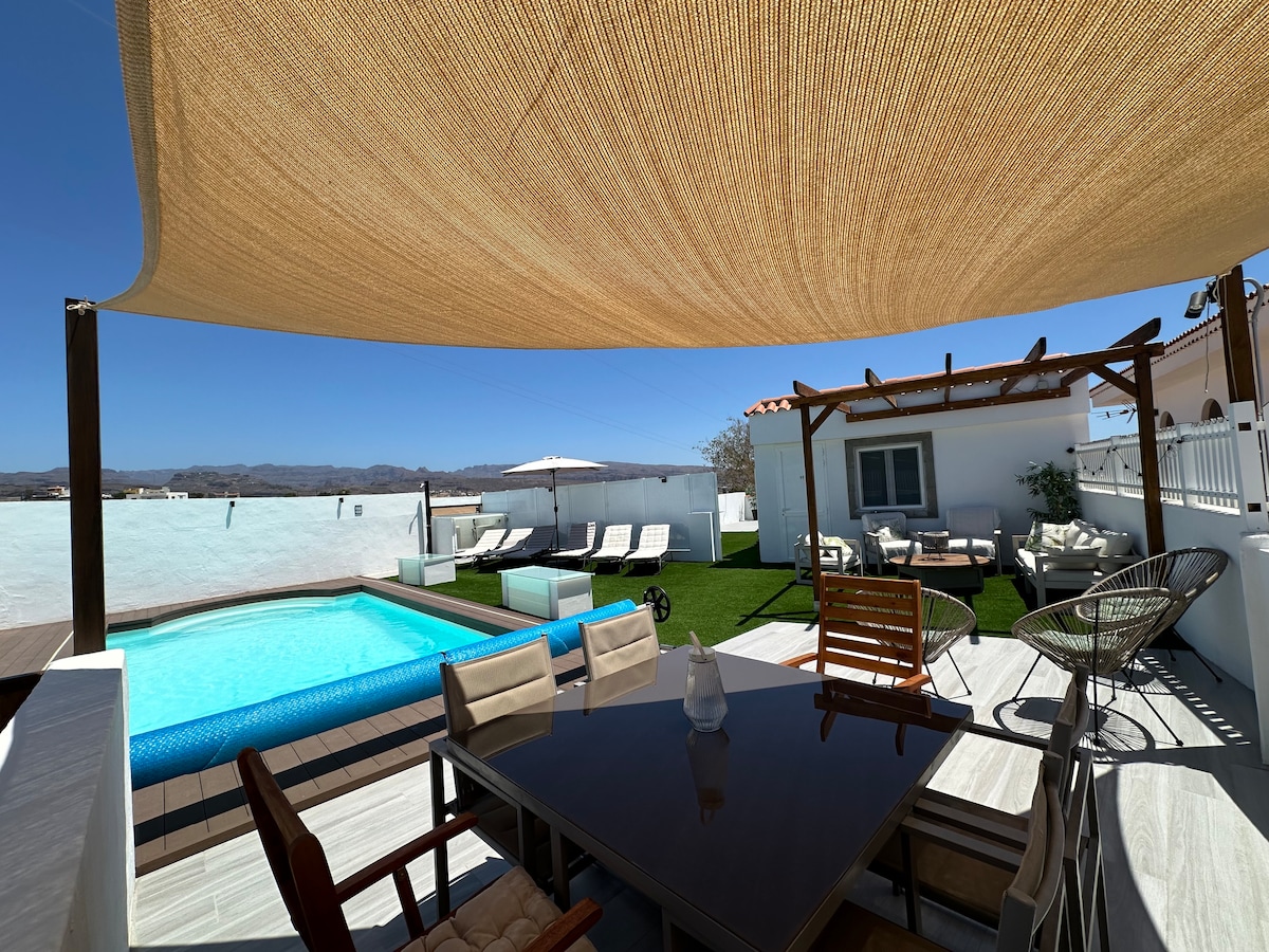 Υπέροχη και υψηλής ποιότητας βίλα στην ηλιόλουστη περιοχή κοντά στη διάσημη παραλία Amadores ή στο Anfi Golf! Η βίλα είναι σχεδιασμένη με υψηλά πρότυπα, με πλήρως εξοπλισμένη κουζίνα, 2 σαλόνια, 4 υπνοδωμάτια, 4 μπάνια, γενναιόδωρη βεράντα στην αυλή, χώρο μπάρμπεκιου, βοτανικό κήπο/θερμαινόμενη πισίνα. Είναι ένα ιδιωτικό μέρος, όπου η άνεση εκτιμάται. Κατάλληλη για οικογένειες, τα παιδιά θα λατρέψουν τον χώρο της πισίνας. Θα είστε 5 λεπτά μακριά από τις καλύτερες παραλίες, το νεότερο εμπορικό κέντρο στο GC.